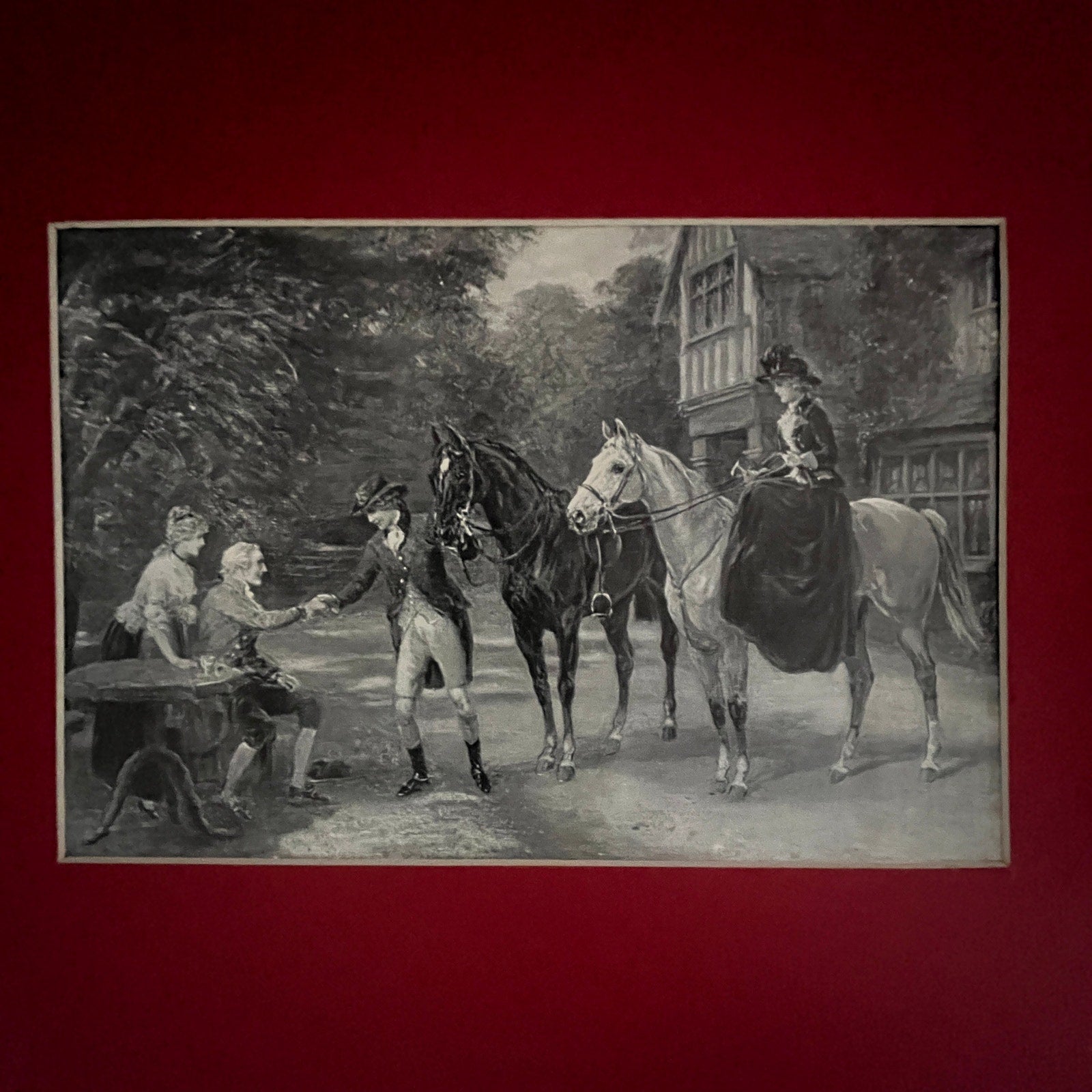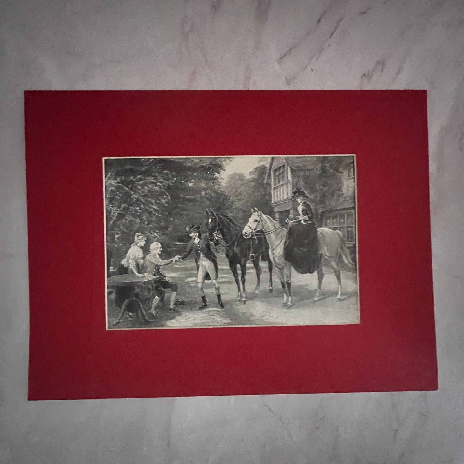 Colonial Lady on a Horse Matted Engraving Antique 12x16" Art Print FL1
