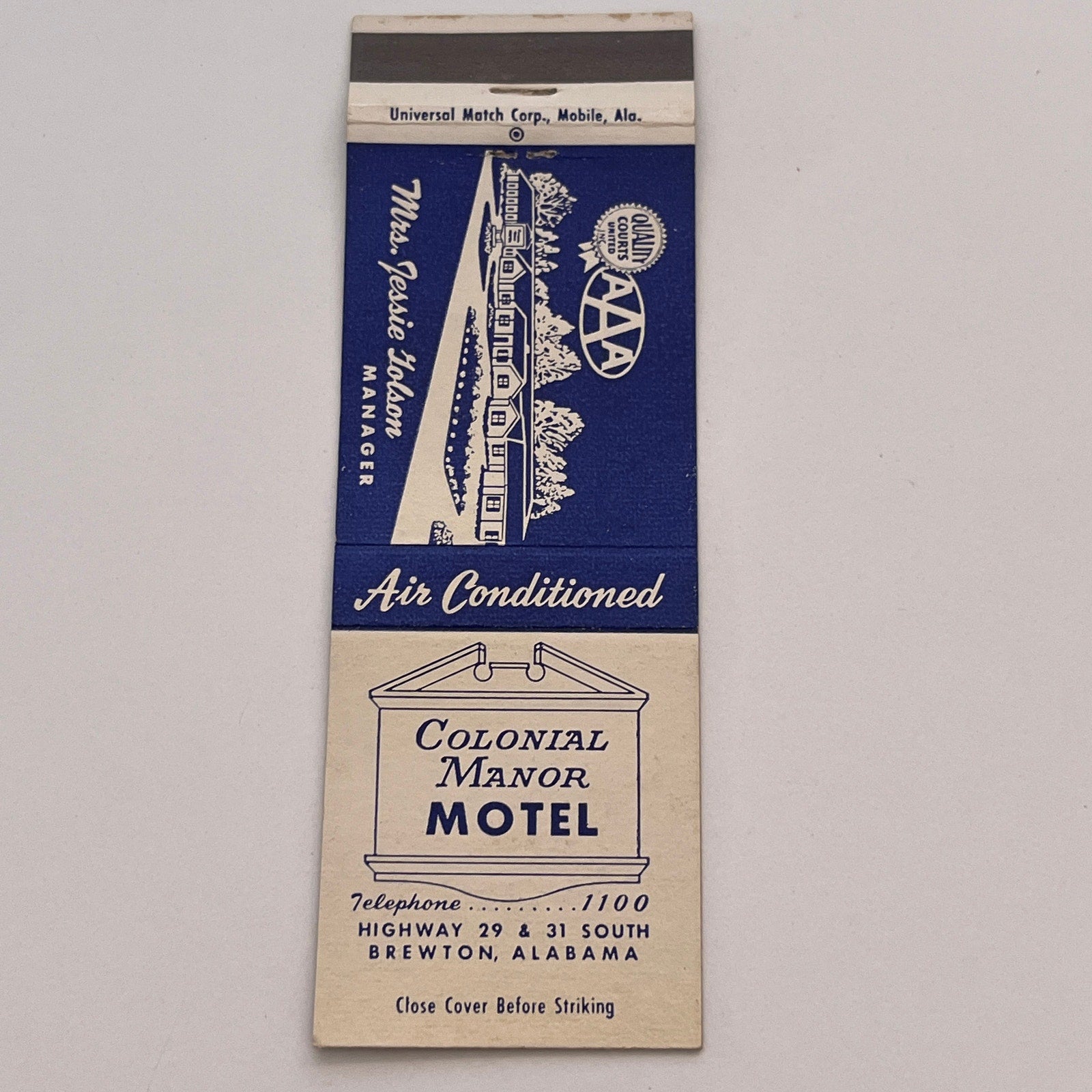 Colonial Manor Motel Hwy 29 & 31 South Brewton AL Vtg Matchbook Cover TB6-MB2-3