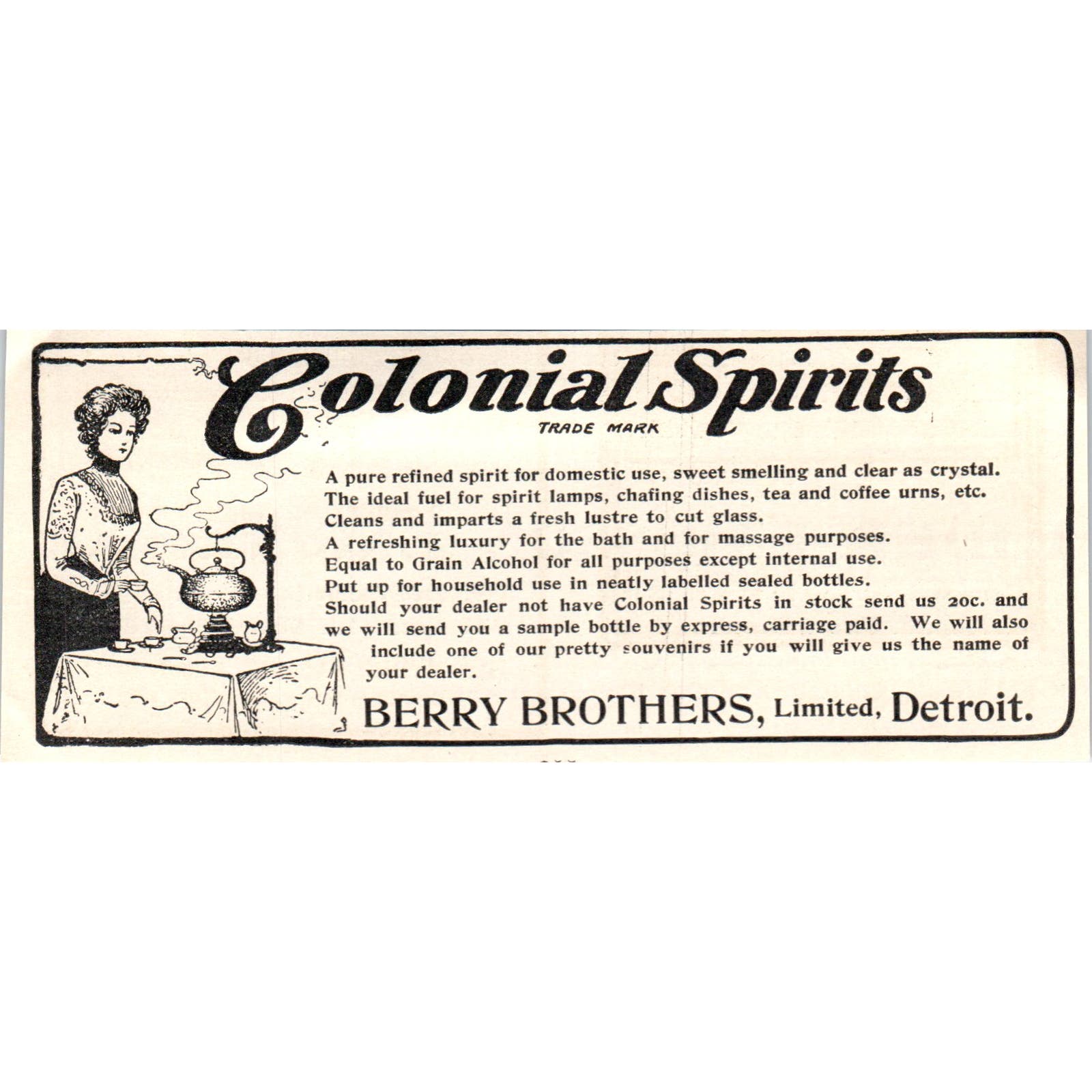 Colonial Spirits Berry Brothers Ltd Detroit c1905 Original Advertisement AE7-A1