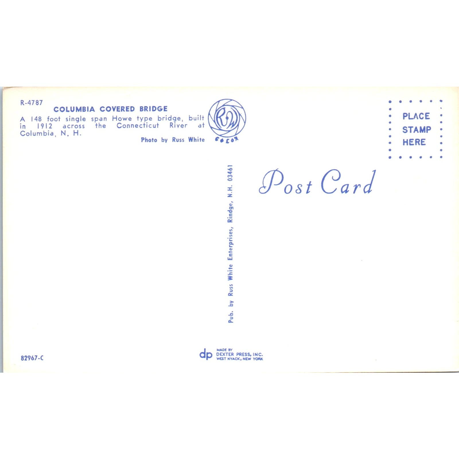 Columbia Bridge Connecticut River NH Covered Bridge Postcard PC4