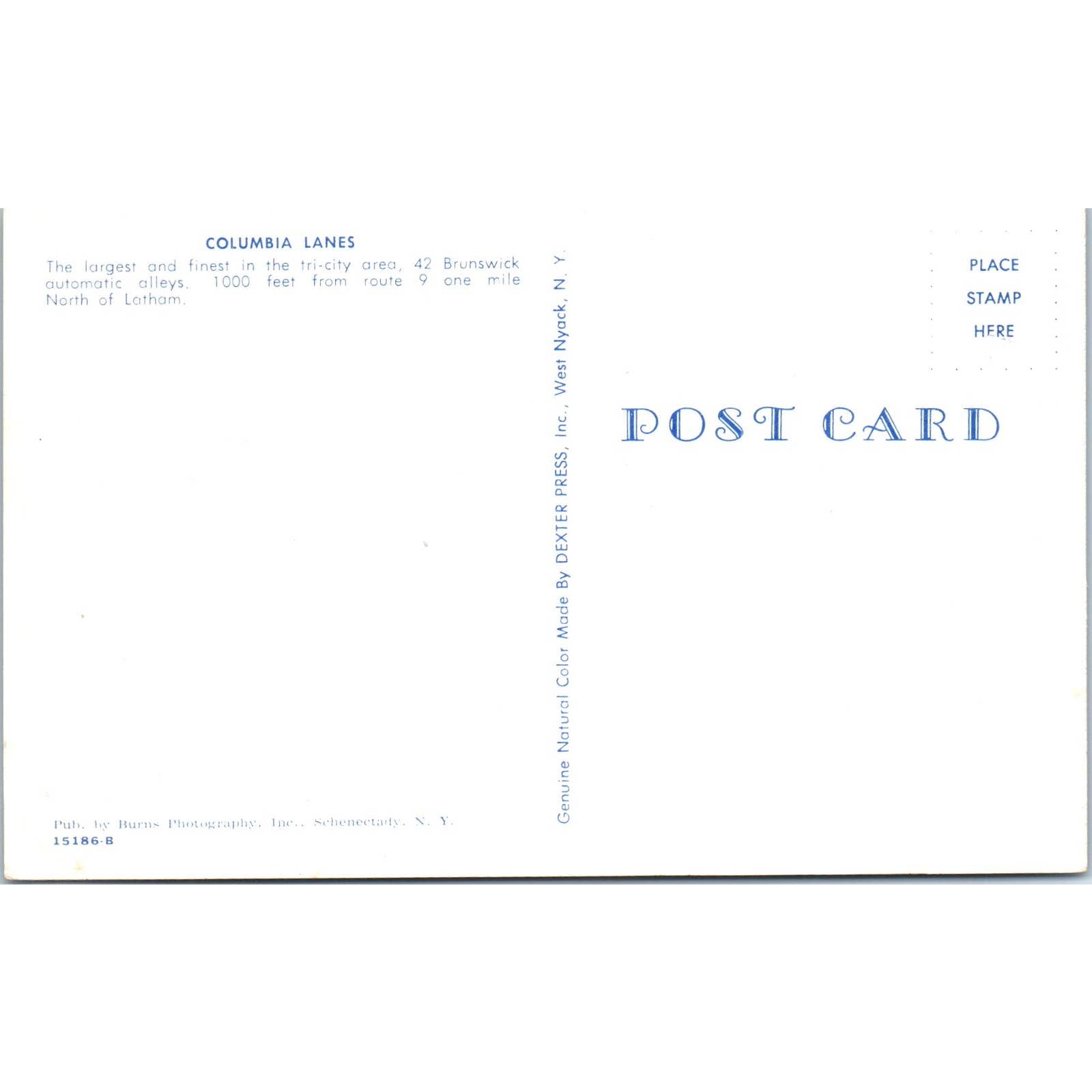 Columbia Lanes Bowling Alley Latham NY 1950s Original Postcard TK1-23