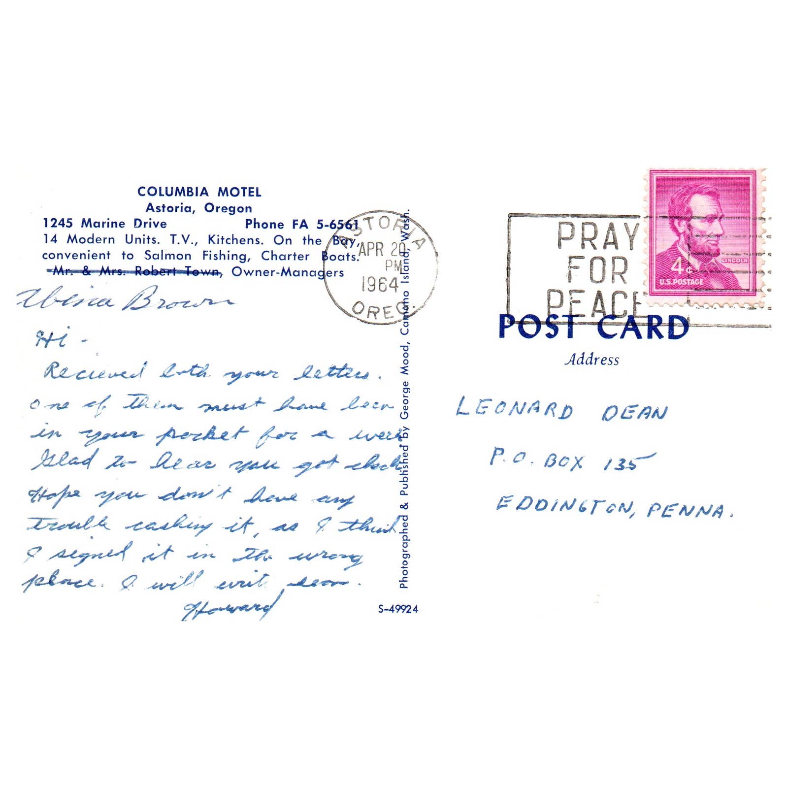Columbia Motel Astoria Oregon 1964 - Postcard TJ8-1