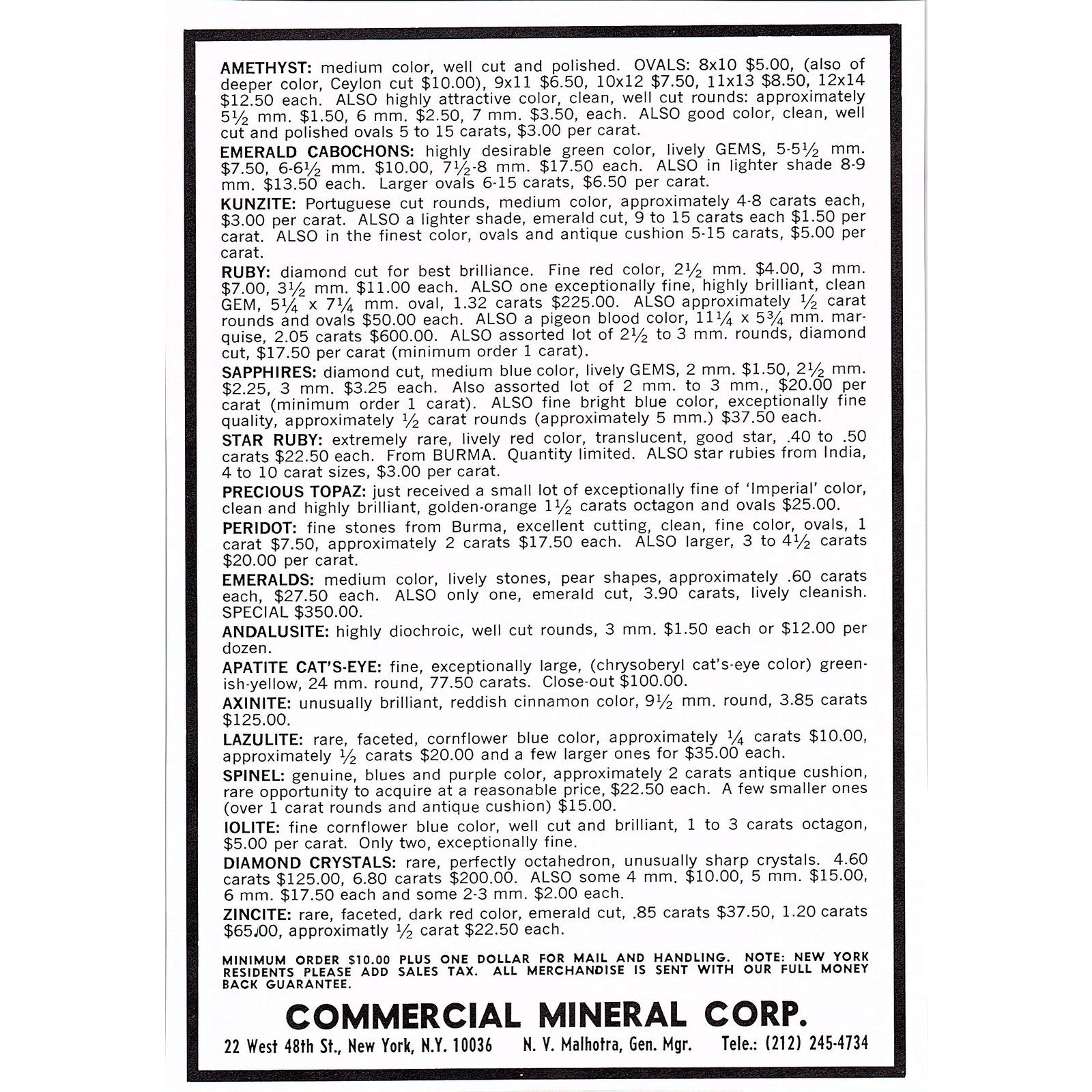 Commercial Mineral Corp Lapidary N.V. Malhotra New York NY 1972 Ad AF8-2