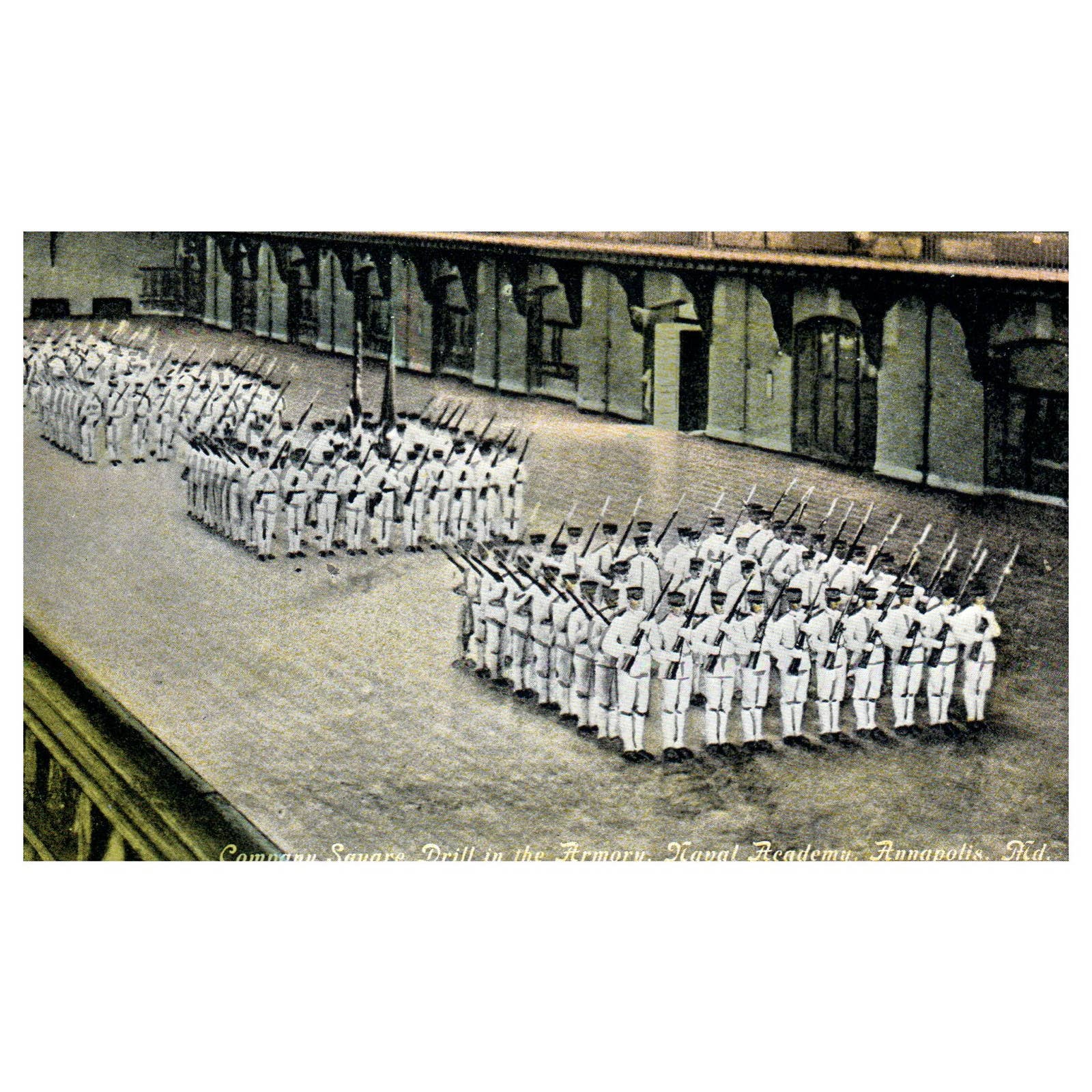 Company Square Drill Naval Academy Annapolis MD - Original Postcard TJ8-5