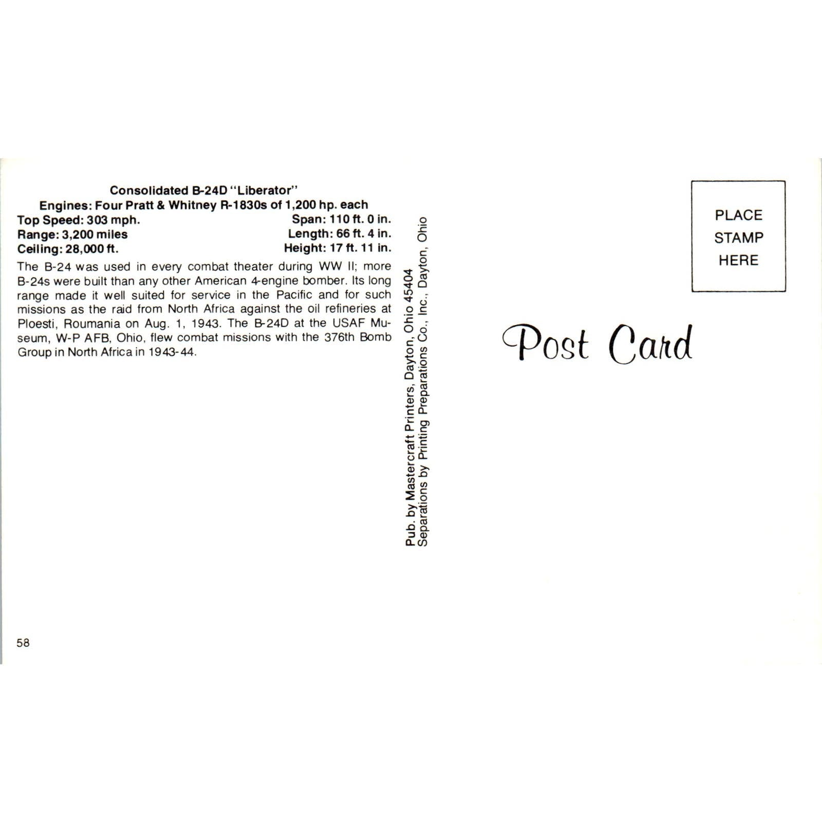Consolidated B-24D Liberator Vintage Postcard PC1