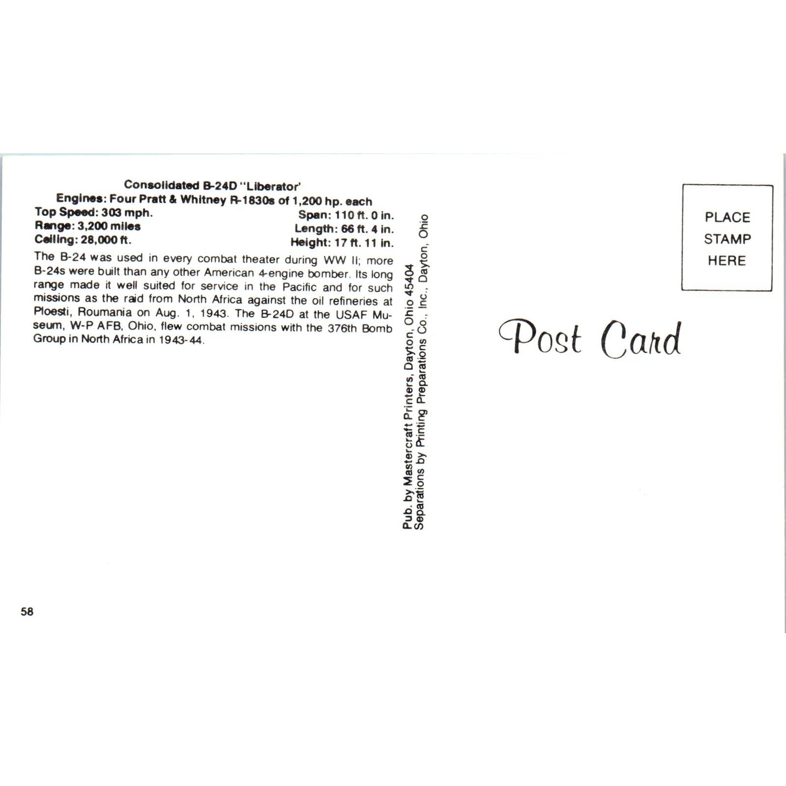 Consolidated B-24D Liberator Vintage Postcard PC2
