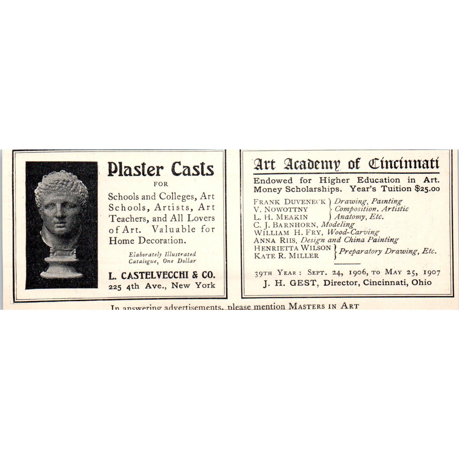 Original ad taken from Masters in Art Magazine c1905. Measure approx 2x5". If you need an exact measurement please ask. As this is over 100 years old, there may be slight discoloration, ripples or small tear, etc. See pics for condition.