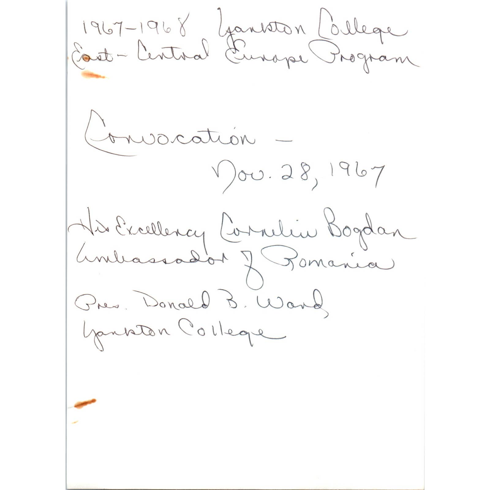 Corneliu Bogdan Romania Ambassador Convocation Yankton College 1967 Photo TK1-P5