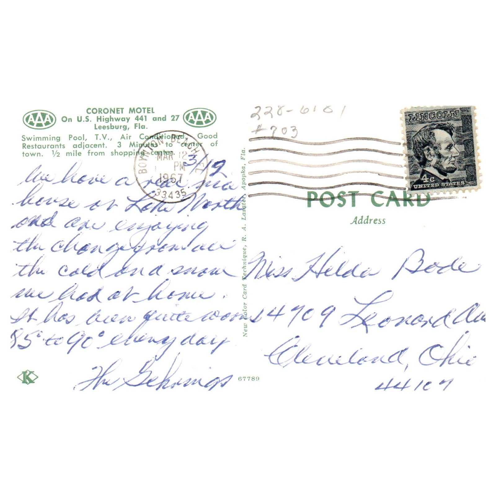 Coronet Motel Leesburg Florida 1967 - Postcard TJ8-1