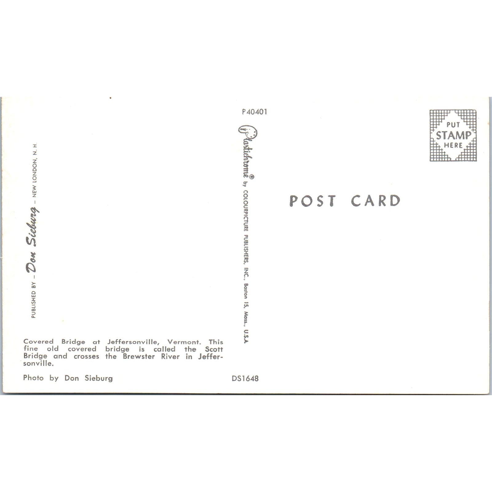 Covered Bridge at Jeffersonville VT Vintage Covered Bridge Postcard PD6
