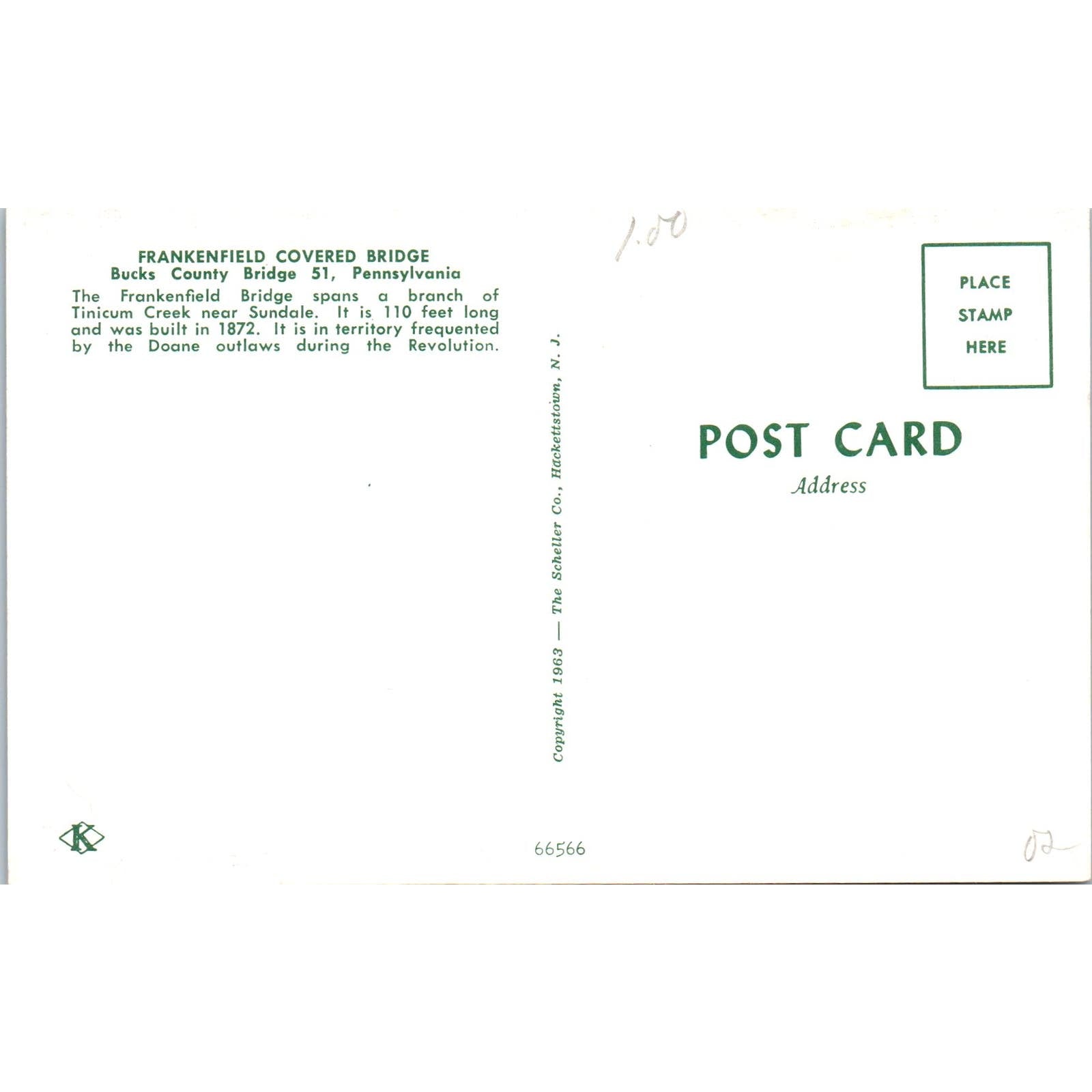 Frankenfield Bridge Bucks County 51 PA Vintage Covered Bridge Postcard PC17