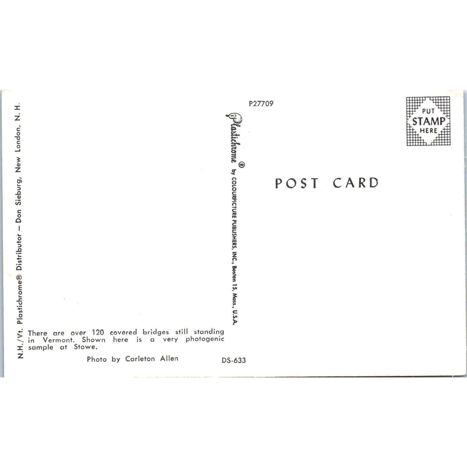 Covered Bridge at Stowe VT Vintage Covered Bridge Postcard PD6
