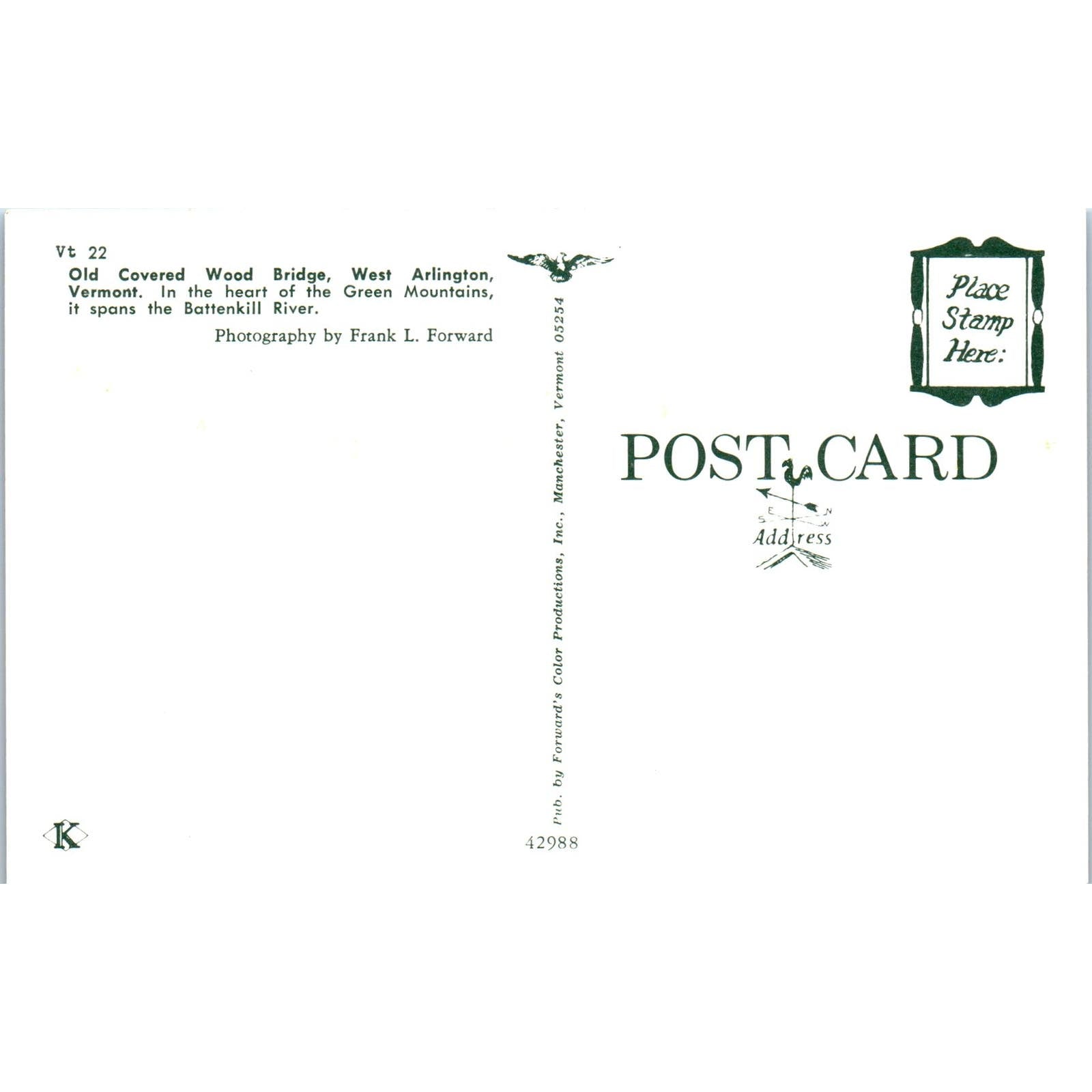 Covered Bridge Battenkill River West Arlington VT Vintage Postcard PD5