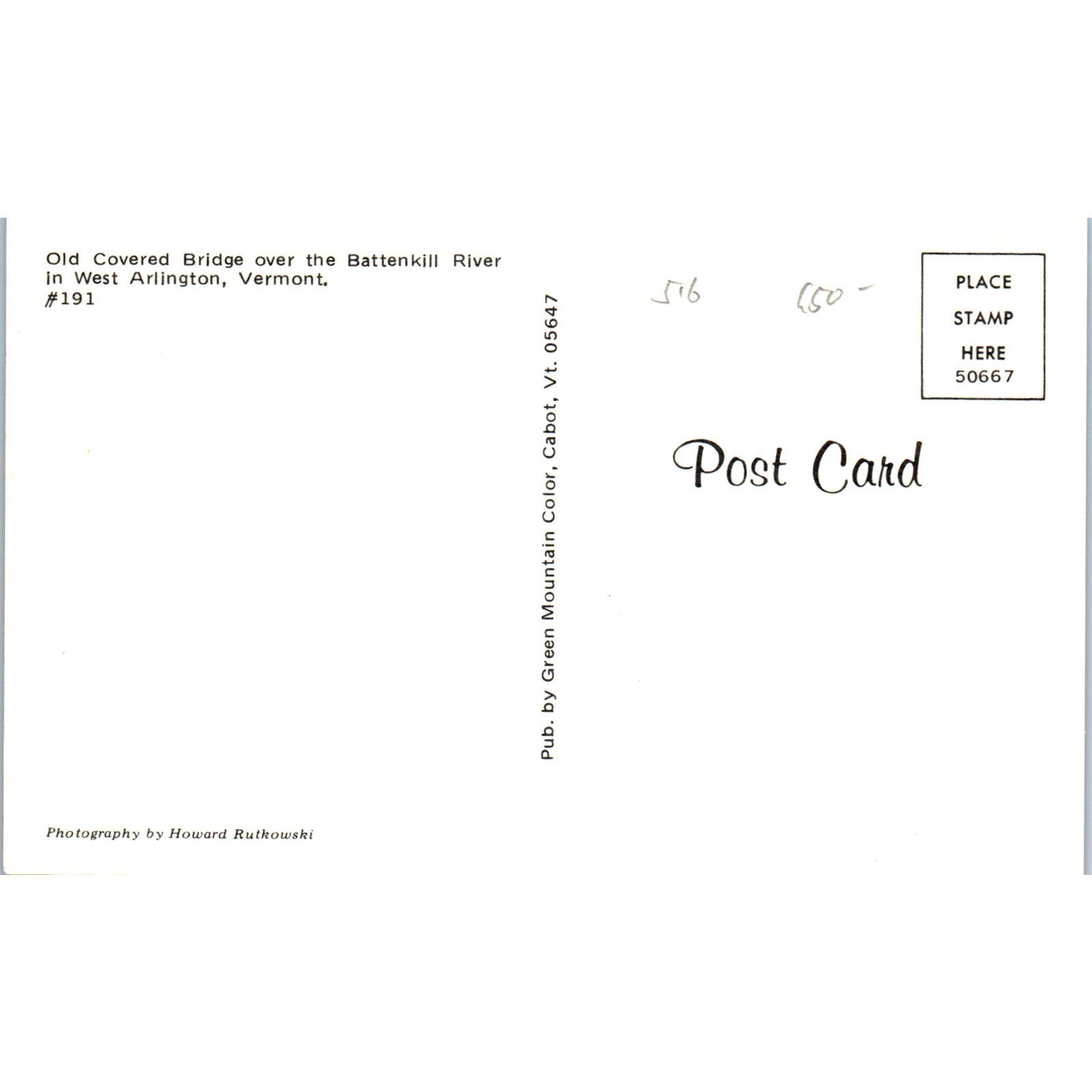 Covered Bridge Battenkill River West Arlington VT Vintage Covered Bridge Postcard PD6