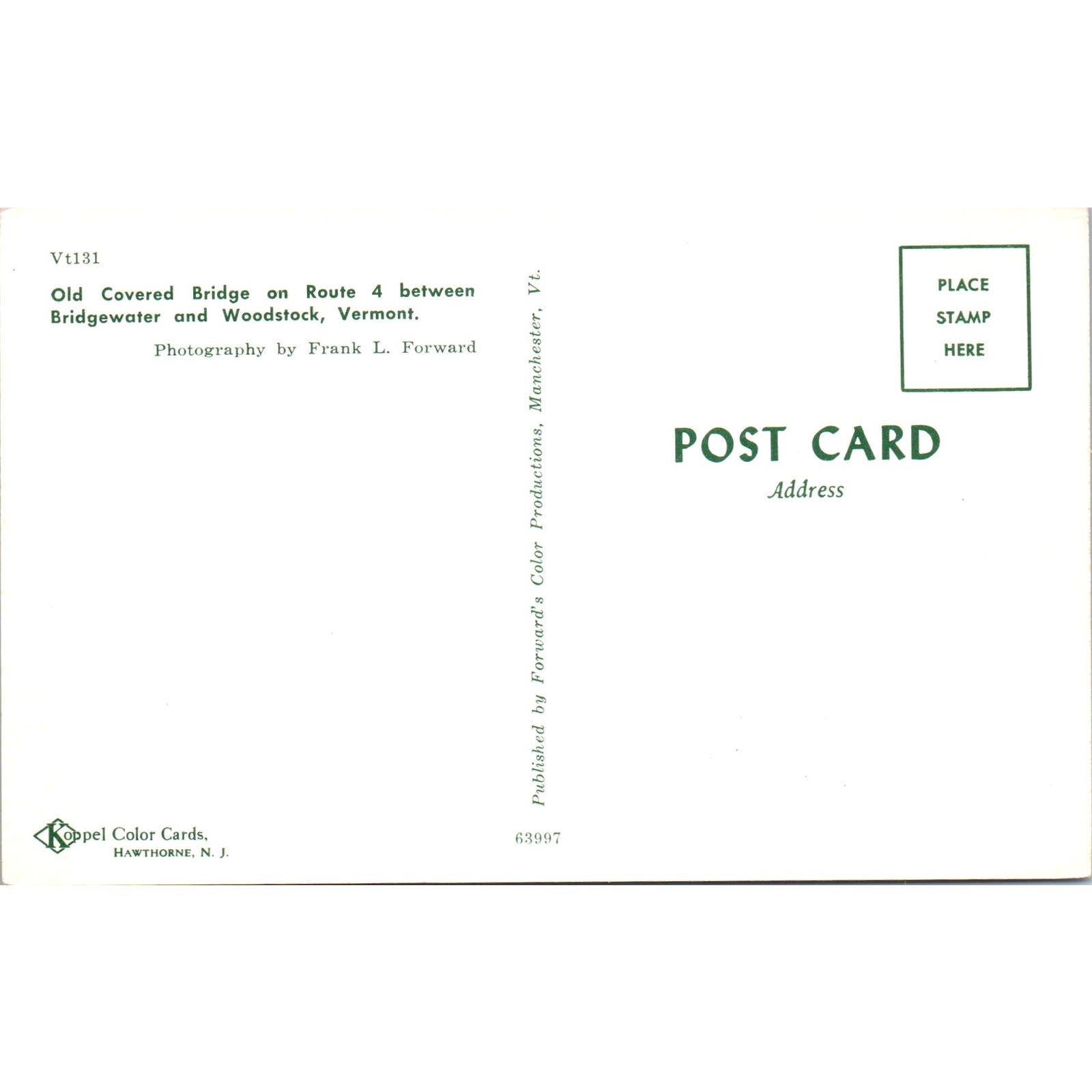 Covered Bridge Between Bridgewater & Woodstock VT Vintage Covered Bridge Postcard PD6