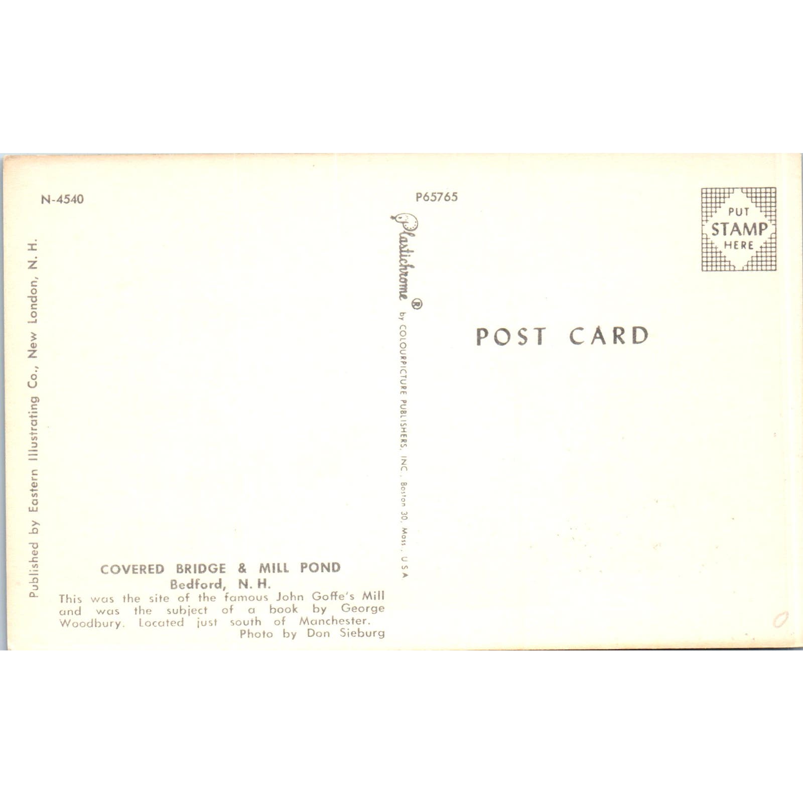Covered Bridge & Mill Pond Bedford New Hampshire Covered Bridge Postcard PC8