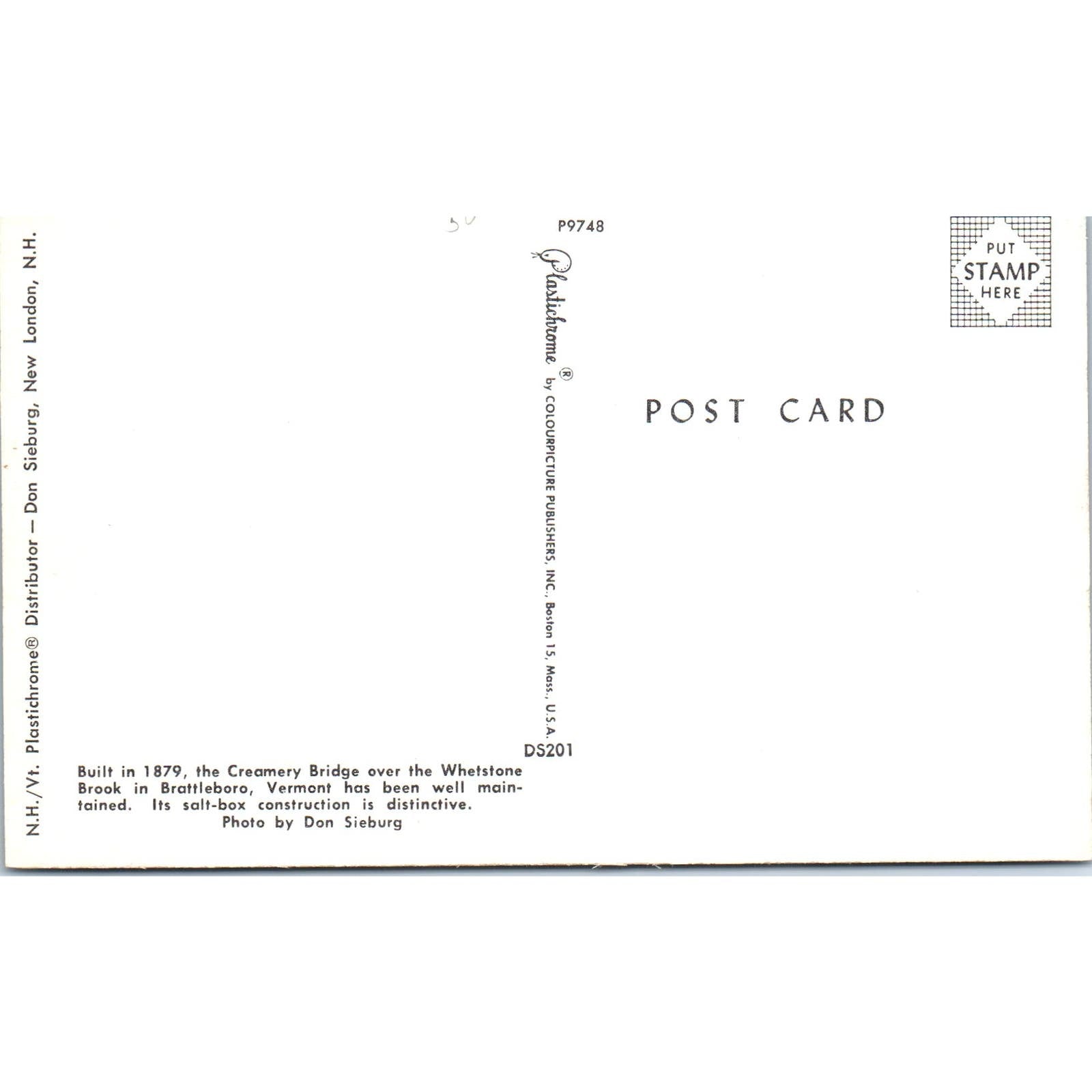 Covered Bridge over Whetstone Brook Brattleboro Vermont Vintage Postcard PD2
