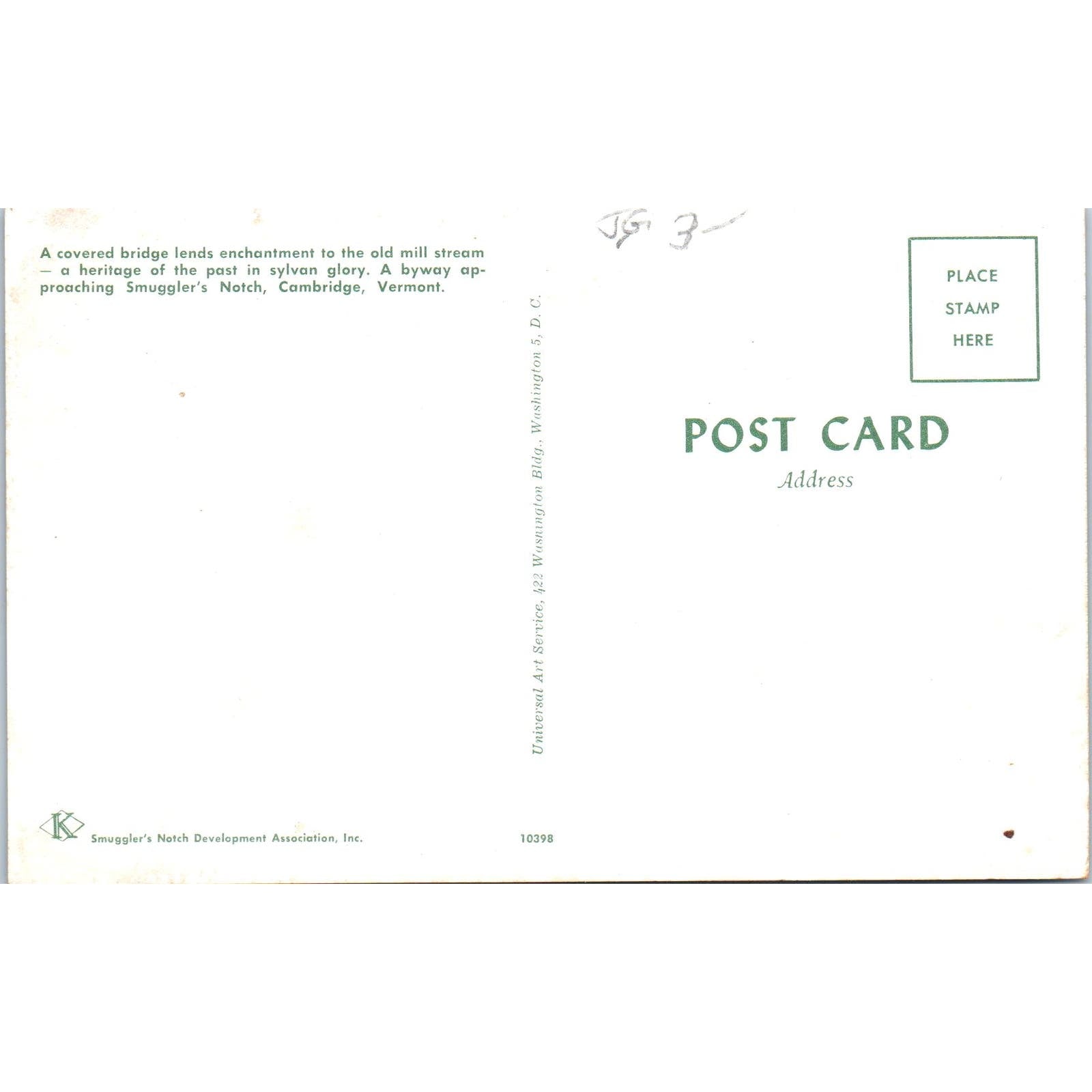 Covered Bridge Smuggler's Notch Cambridge VT Vintage Covered Bridge Postcard PD6