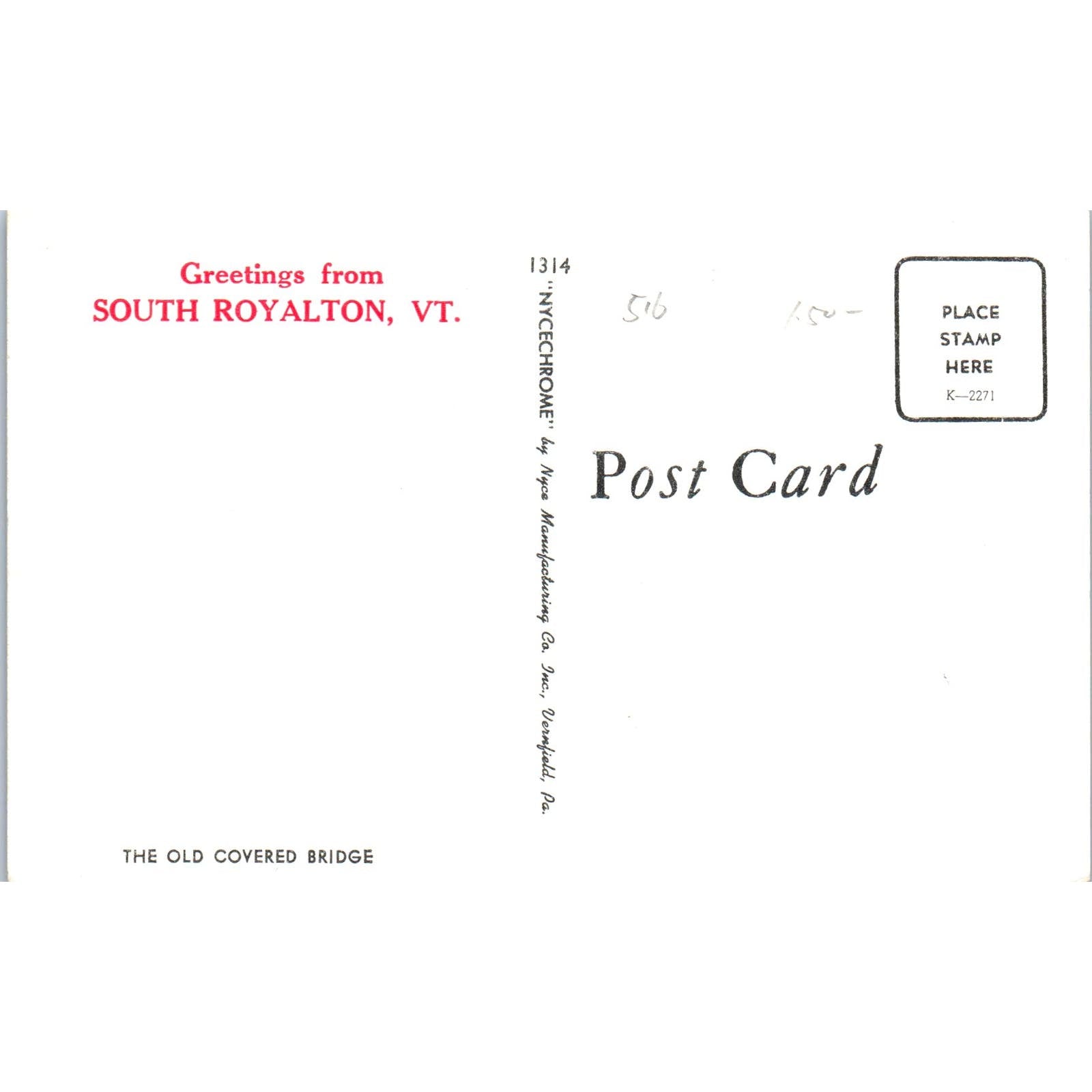 Covered Bridge South Royalton VT Vintage Covered Bridge Postcard PD6