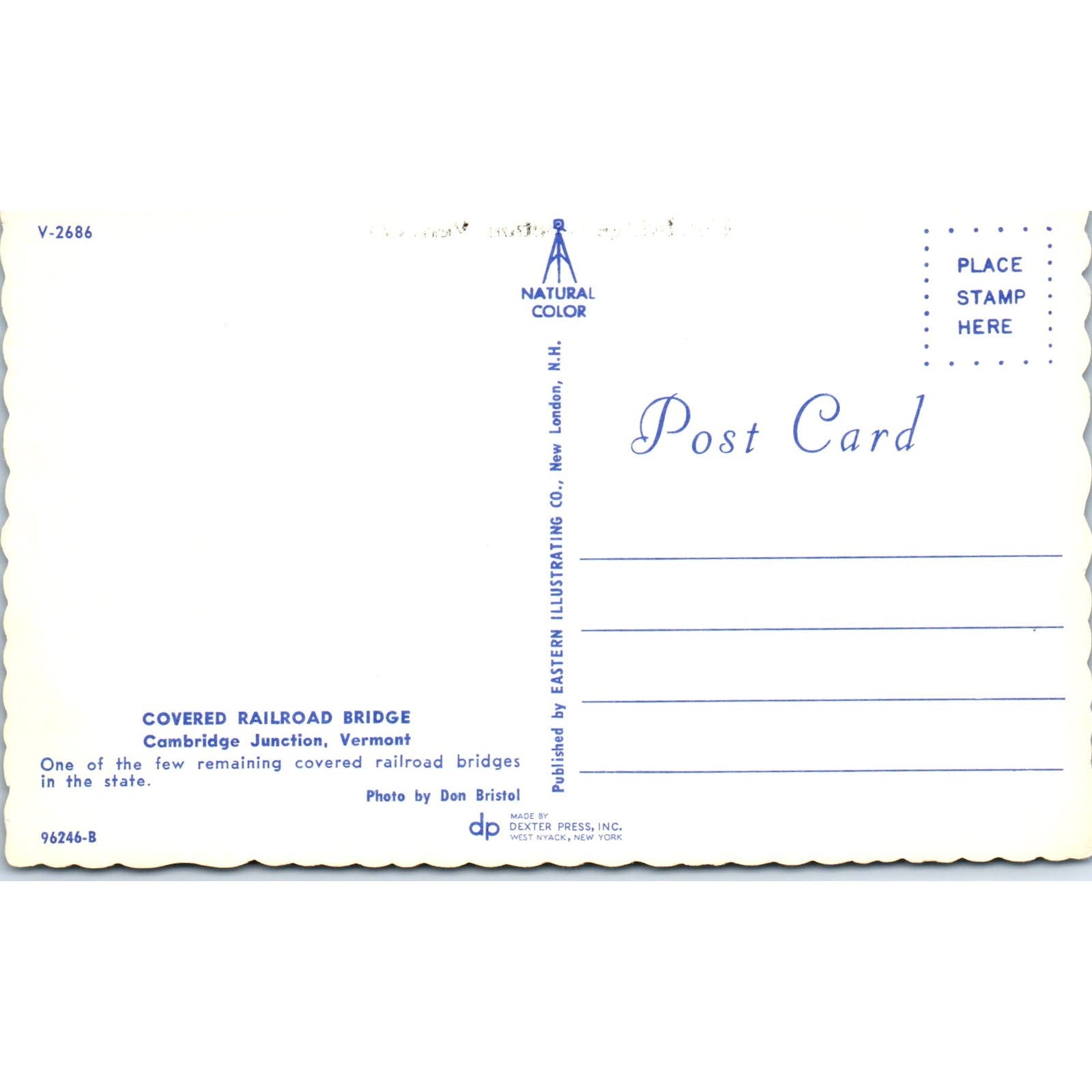 Covered Railroad Bridge Cambridge Junction VT Vintage Covered Bridge Postcard PD3