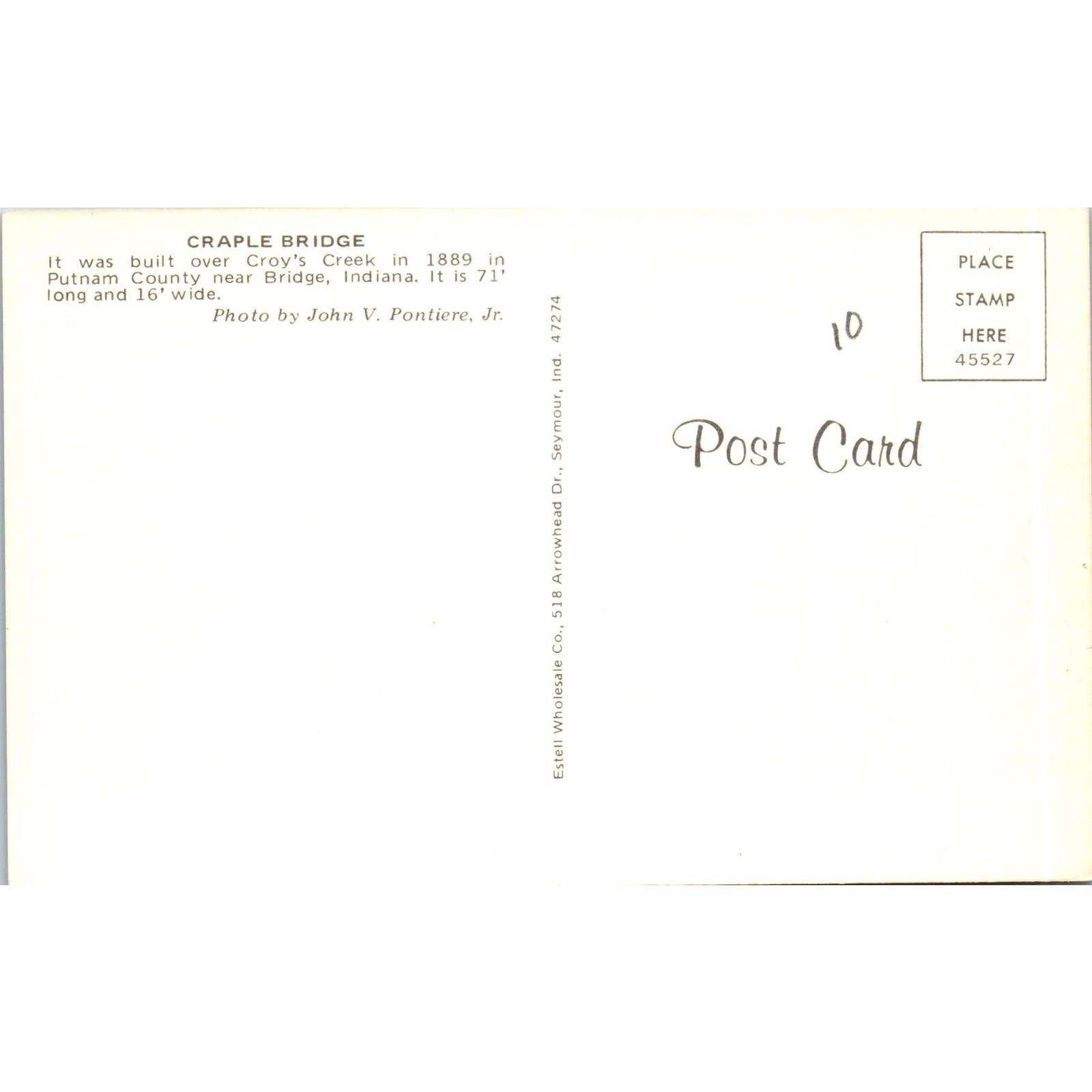 Craple Bridge Croy's Creek Putnam County Bridge IN Covered Bridge Postcard PC13