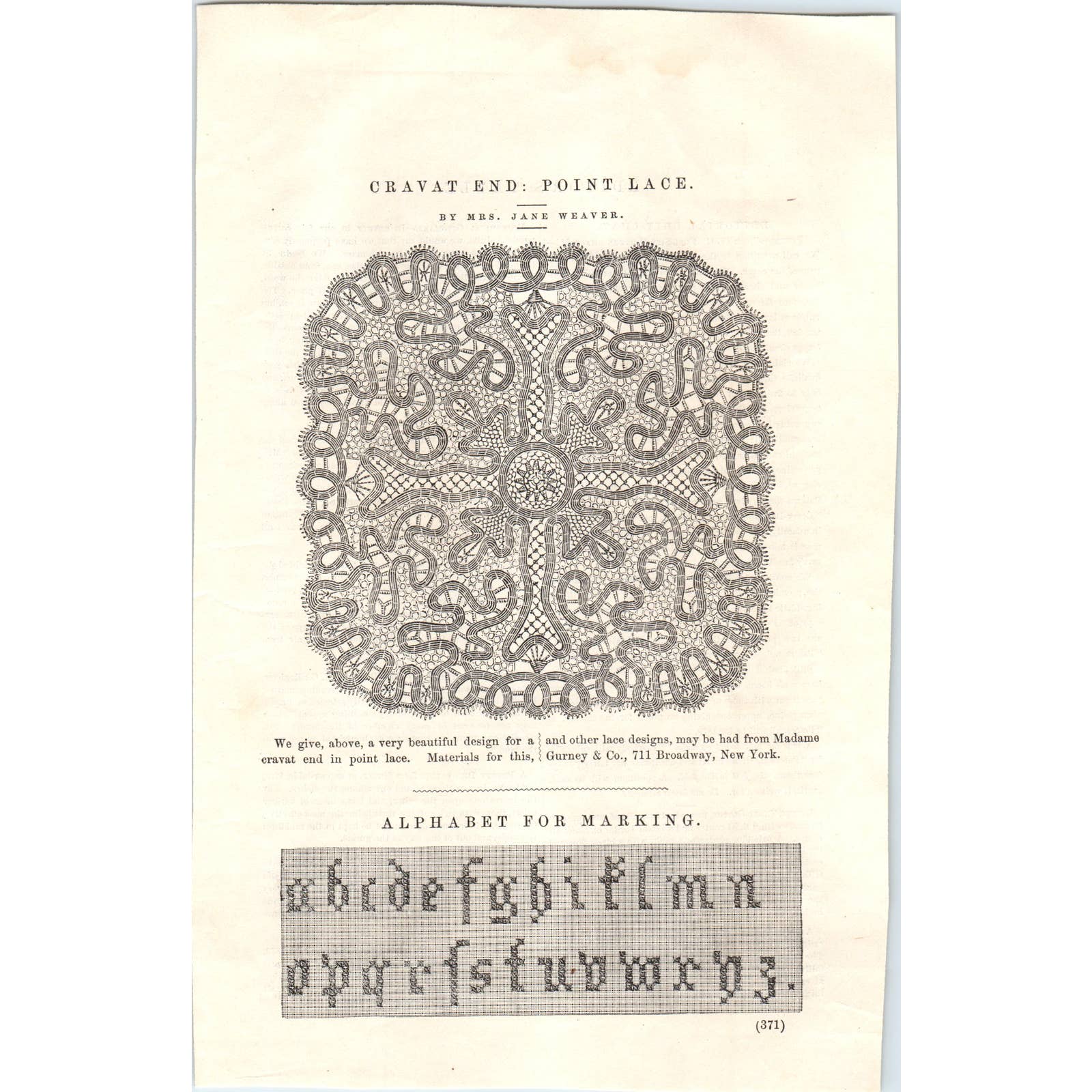 Cravat End Point Lace - Victorian Fashion Plate - 1878 Original Plate TJ7-L2