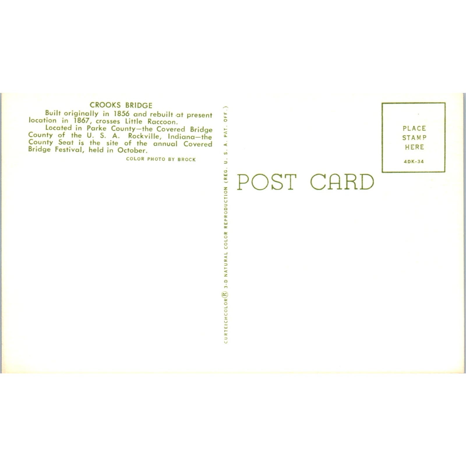 Crooks Bridge Parke County Rockville Indiana Covered Bridge Postcard PC8