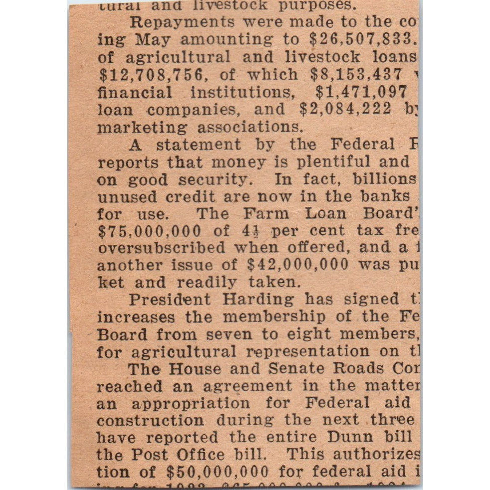 This is a SMALL piece, around 2" wide. If you need an exact measurement please ask. Original piece pulled from the Pennsylvania Farmer June 17, 1922. There may be some light staining, tears, and/or other signs of wear and tear. See pics for condition.