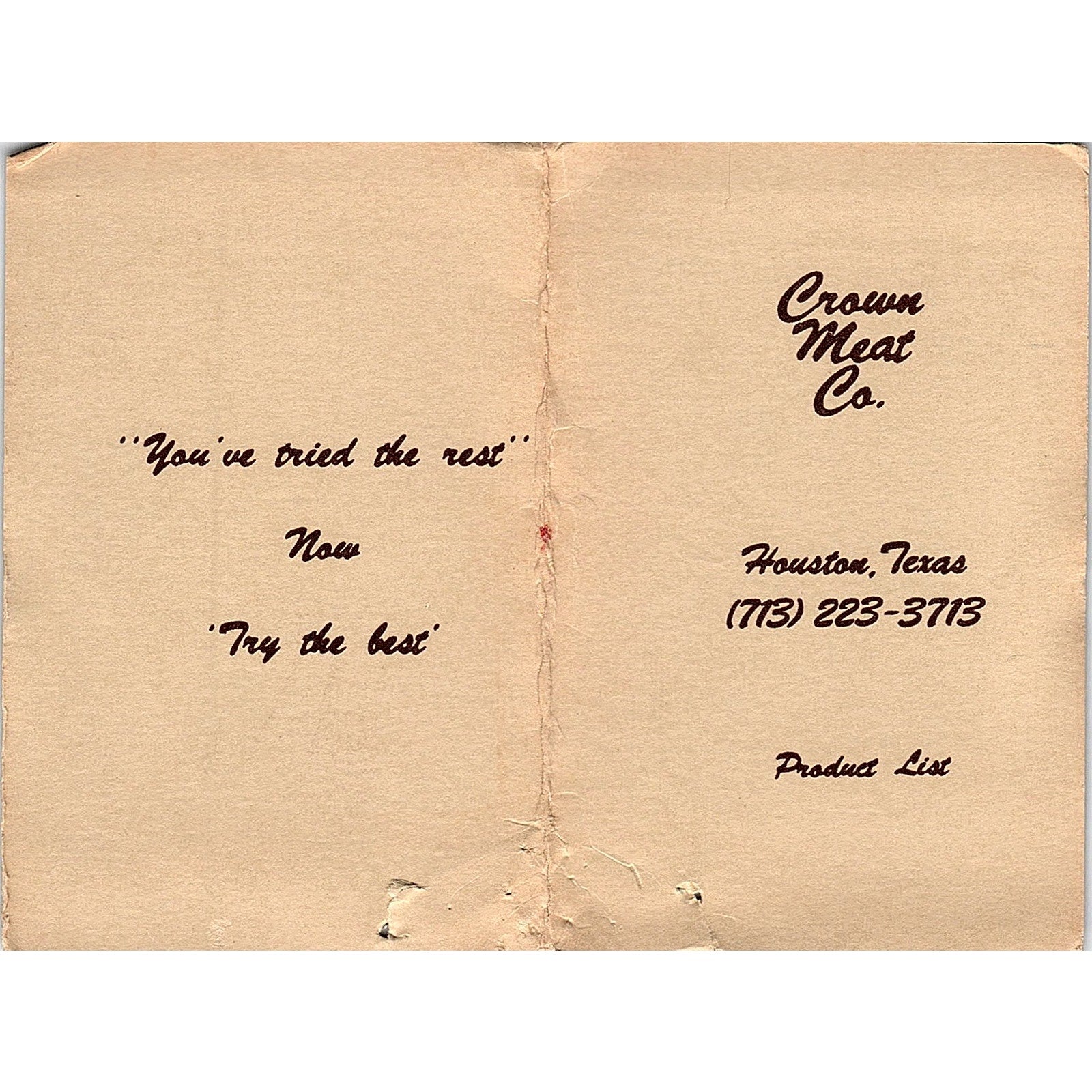 Crown Meat Co Houston TX Vintage Business Card TH2-B2