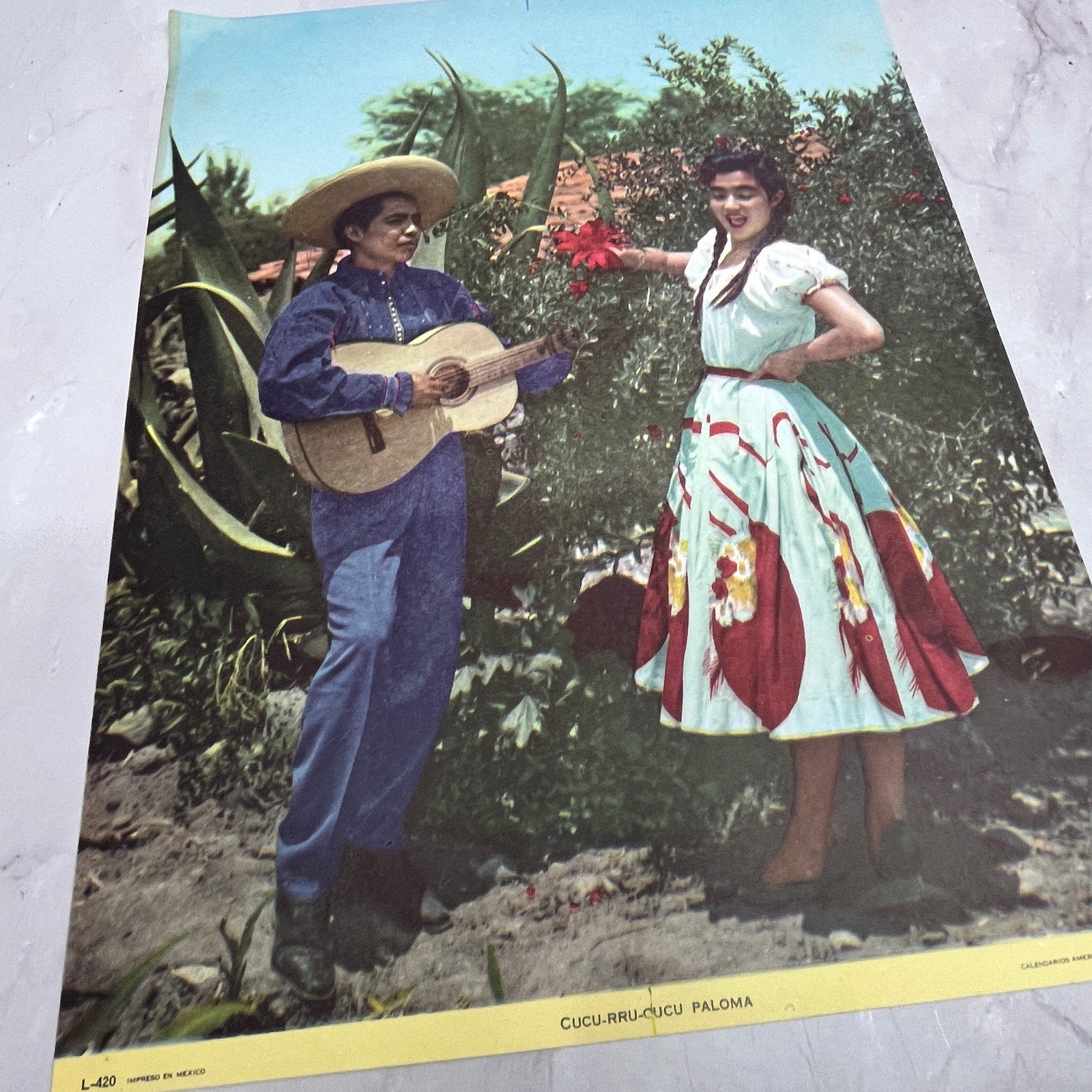 Cu Cu-Rru-Cu Cu Paloma Mariachi & Senorita Retro 8.5x11" Mexican Art Print V20