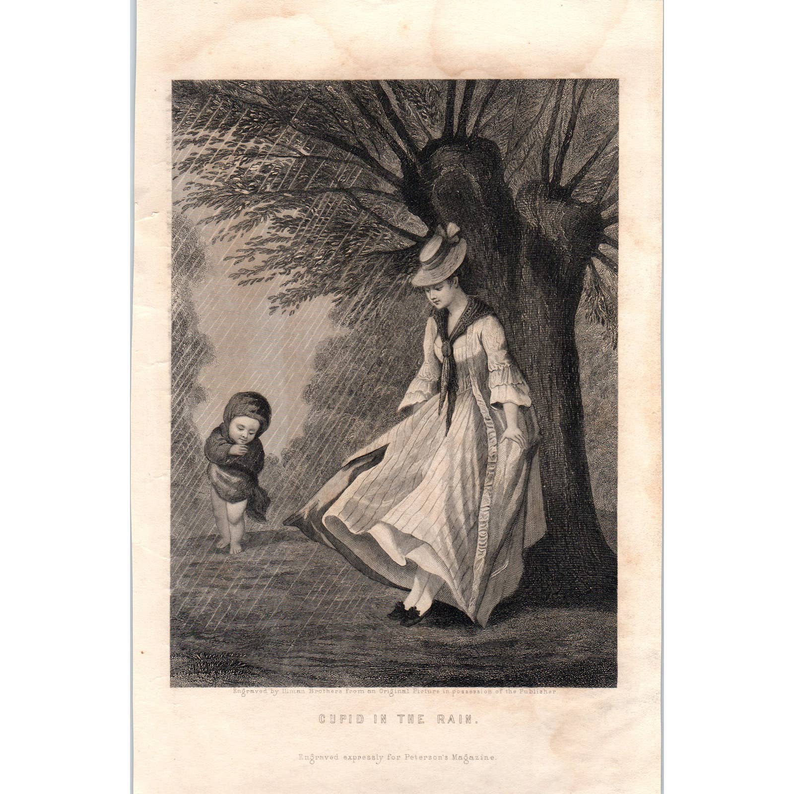 Cupid in the Rain - Victorian Engraving 1878 Original Plate TJ7-L2