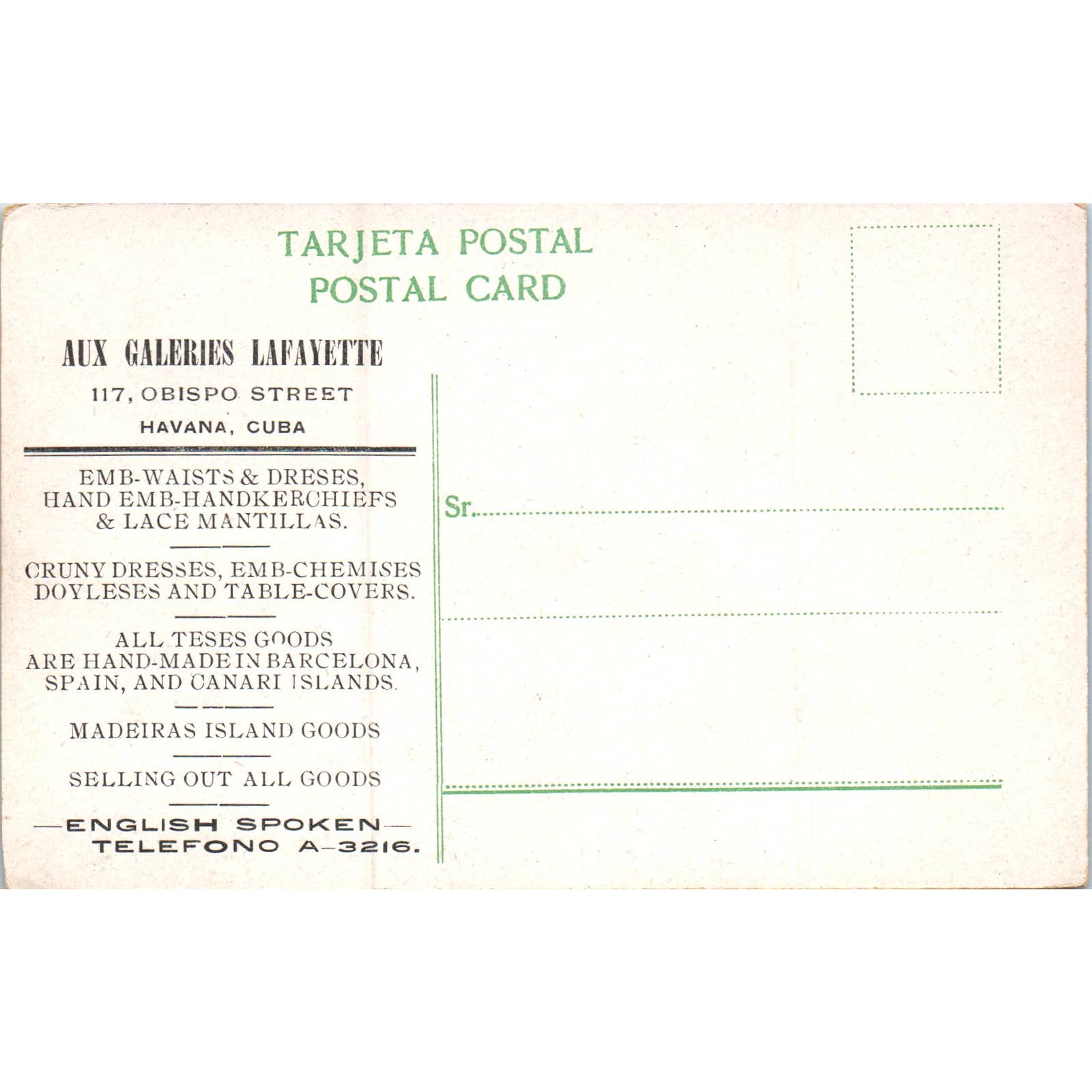 Cutting Sugar Cane Aux Galeries Lafayette Havana Cuba Original Postcard TK1-P16