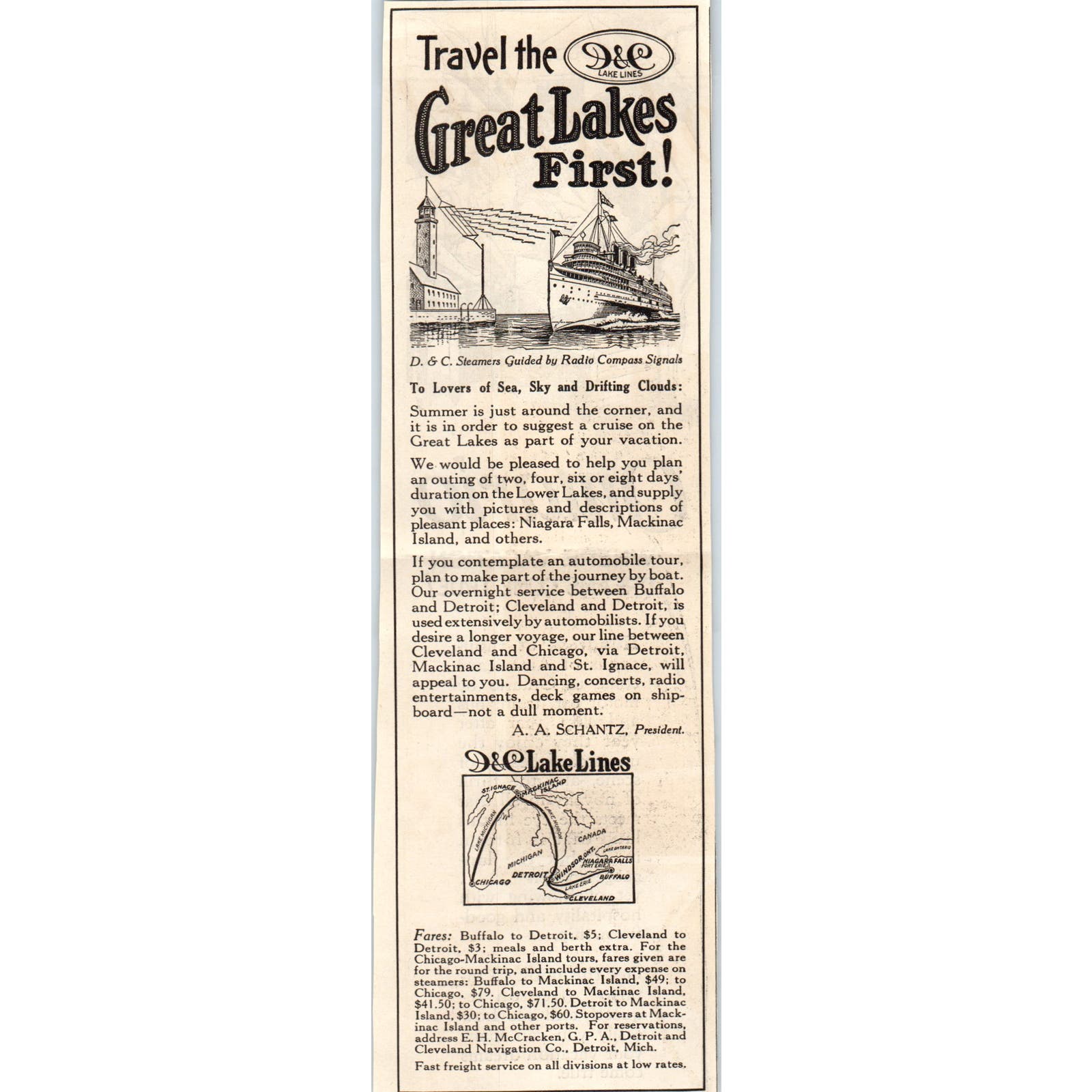 D&C Lake Lines Great Lakes Travel A.A. Schantz 1928 Advertisement AE5-SSE
