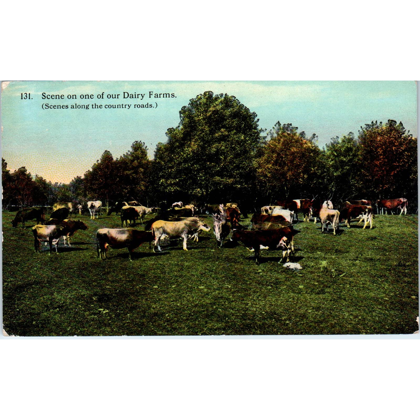 Dairy Farm Scene Cow Pasture c1910 Original Postcard TK1-21
