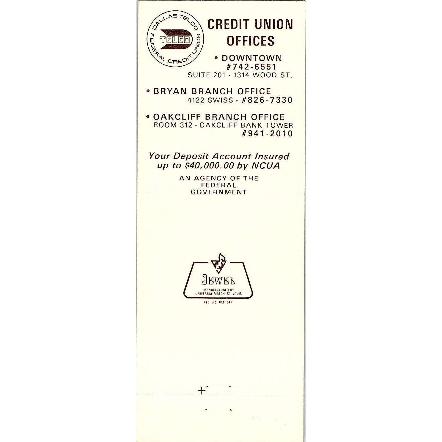 Dallas Telco Federal Credit Union Vintage Matchbook TB6-MB2-8
