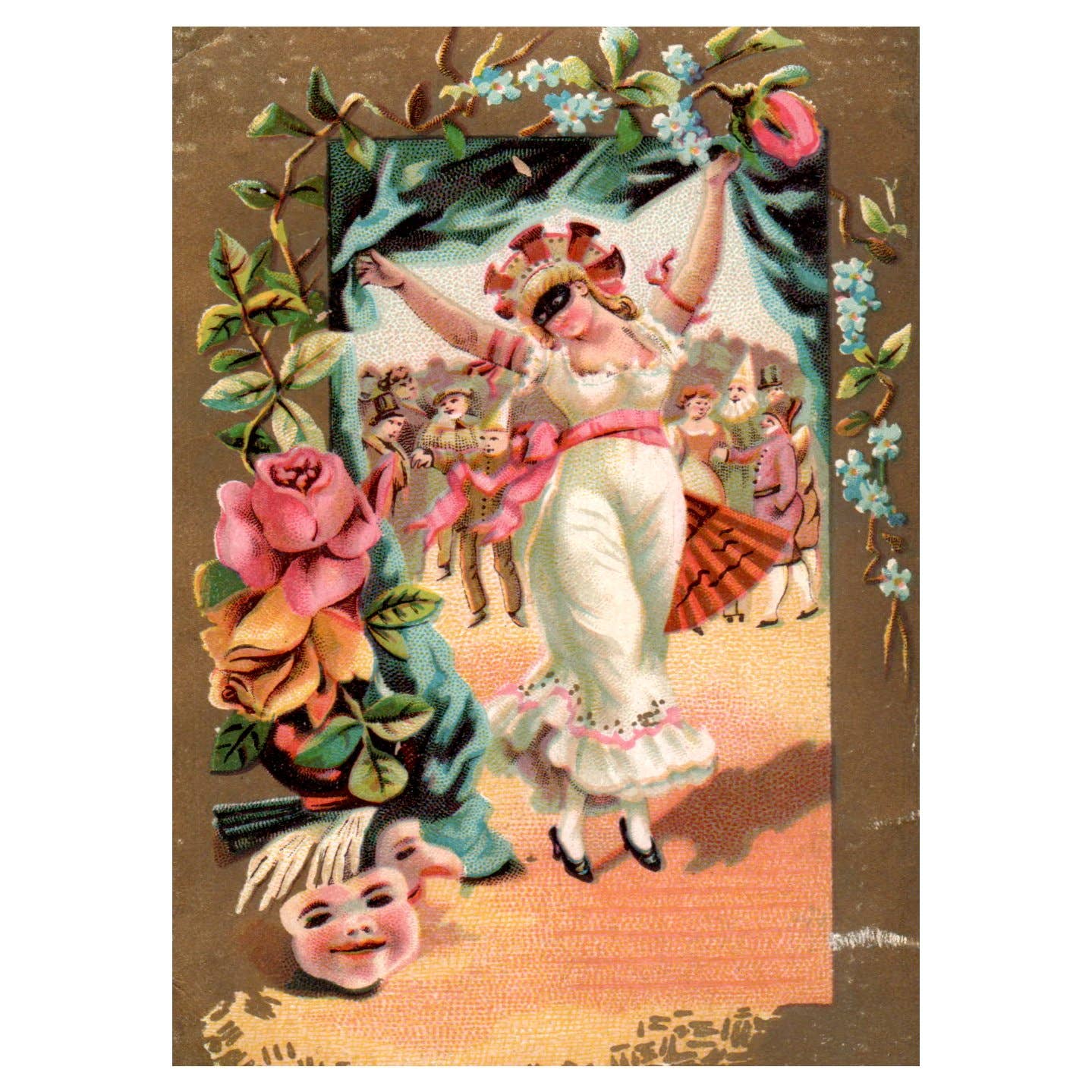 Dancing Harlequin Halloween BLANK - 1880s Victorian Trade Card TJ8-3