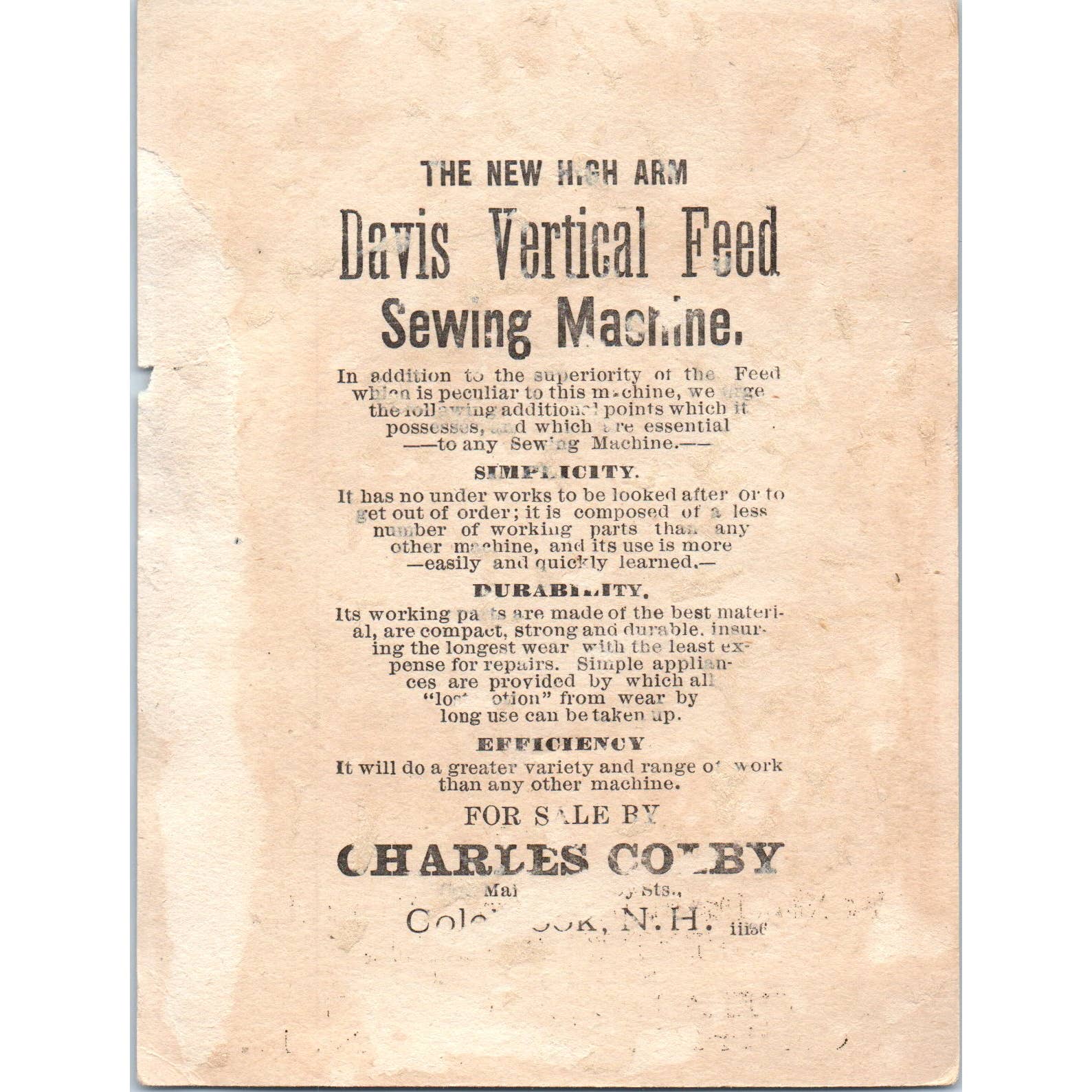Davis Vertical Feed Sewing Machine Charles Colby Colebrook NH Trade Card TJ7-L2