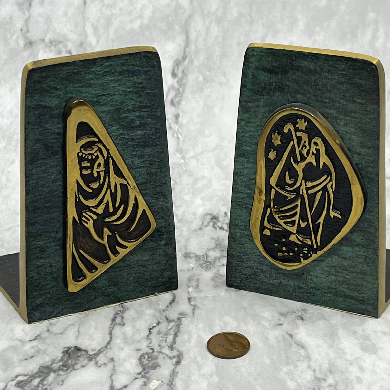 Dayagi Israel Green Burnished Enamel Brass Bookends Jesus Mary & Joseph TK1