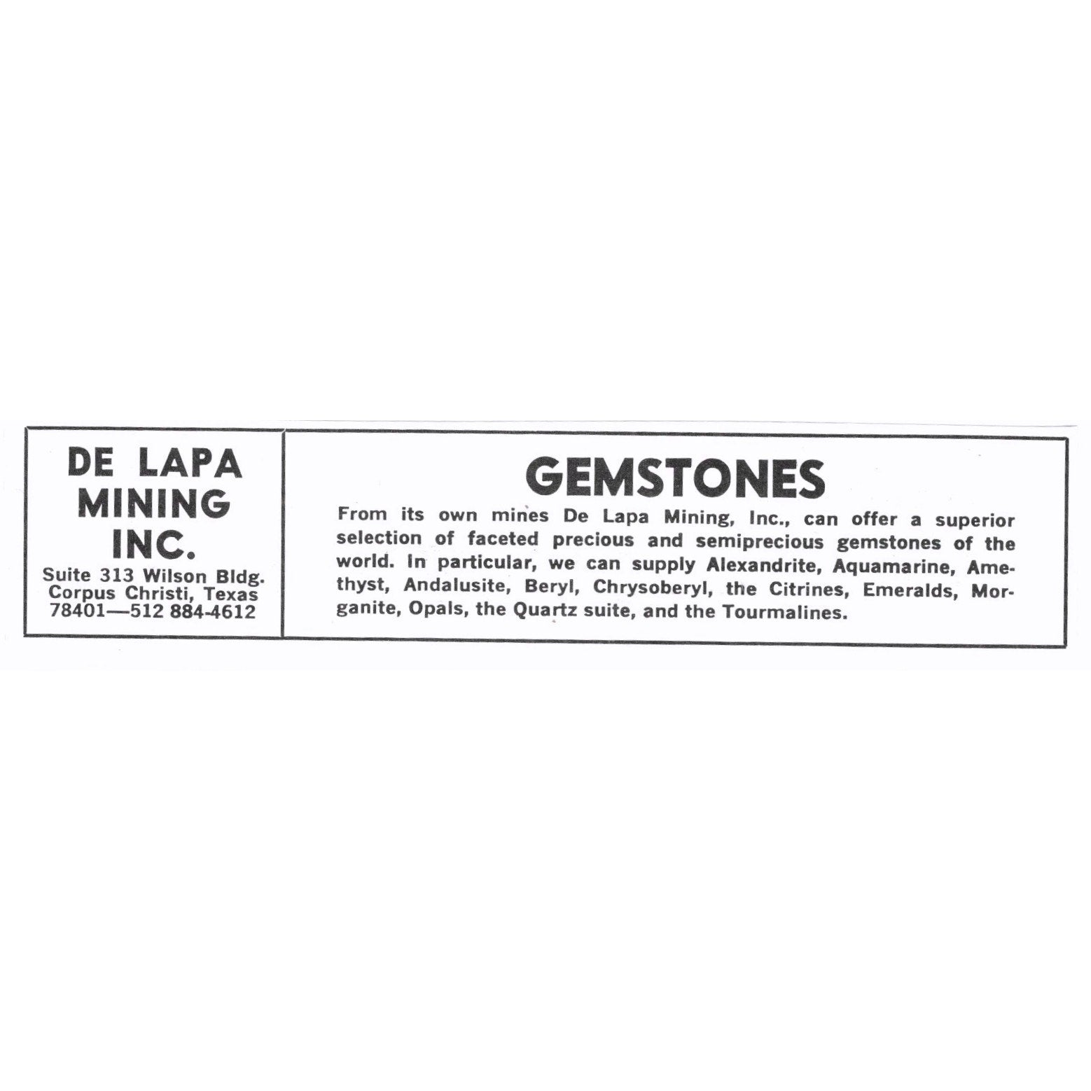 De Lapa Mining Inc Gemstones Corpus Christi Texas 1972 Ad AF8-M4