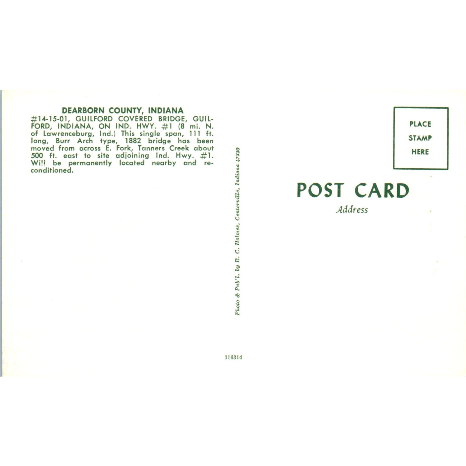 Dearborn County IN Guilford Covered Bridge Postcard PB10