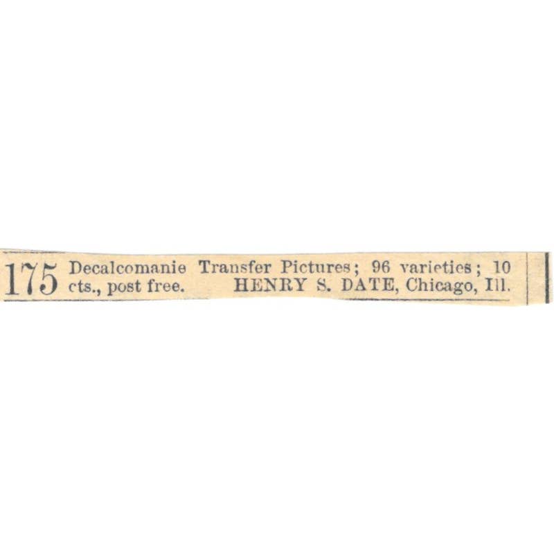 Decalcomanie Transfer Pictures Henry S. Date Chicago - Ad 1878 Original TJ7-L2-2