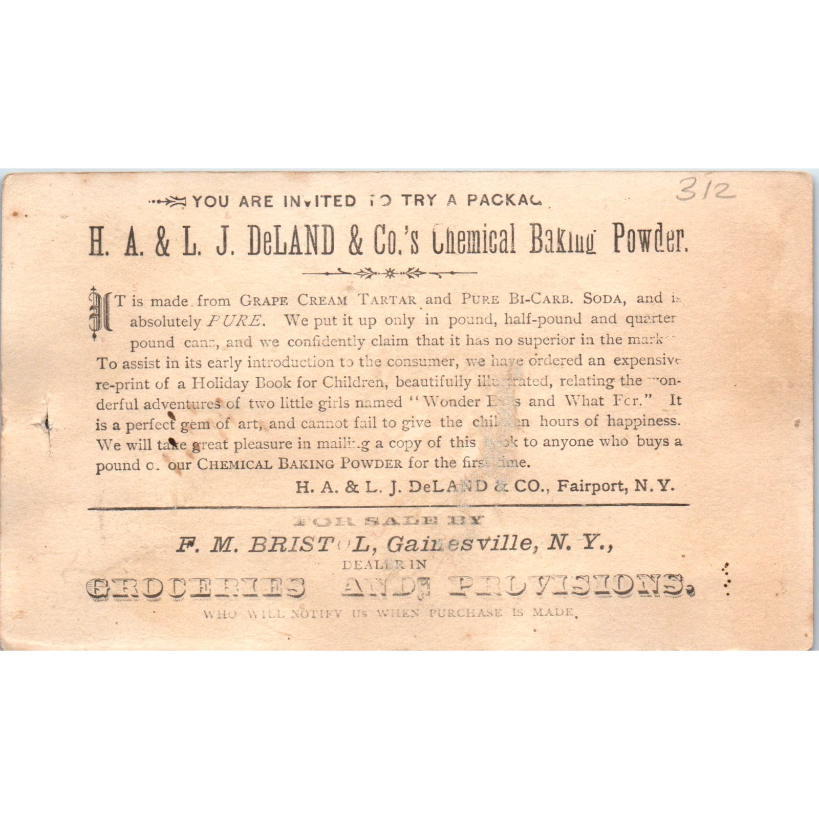 DeLand Baking Powder F.M. Brist Gainesville NY c1880 Victorian Trade Card AE5