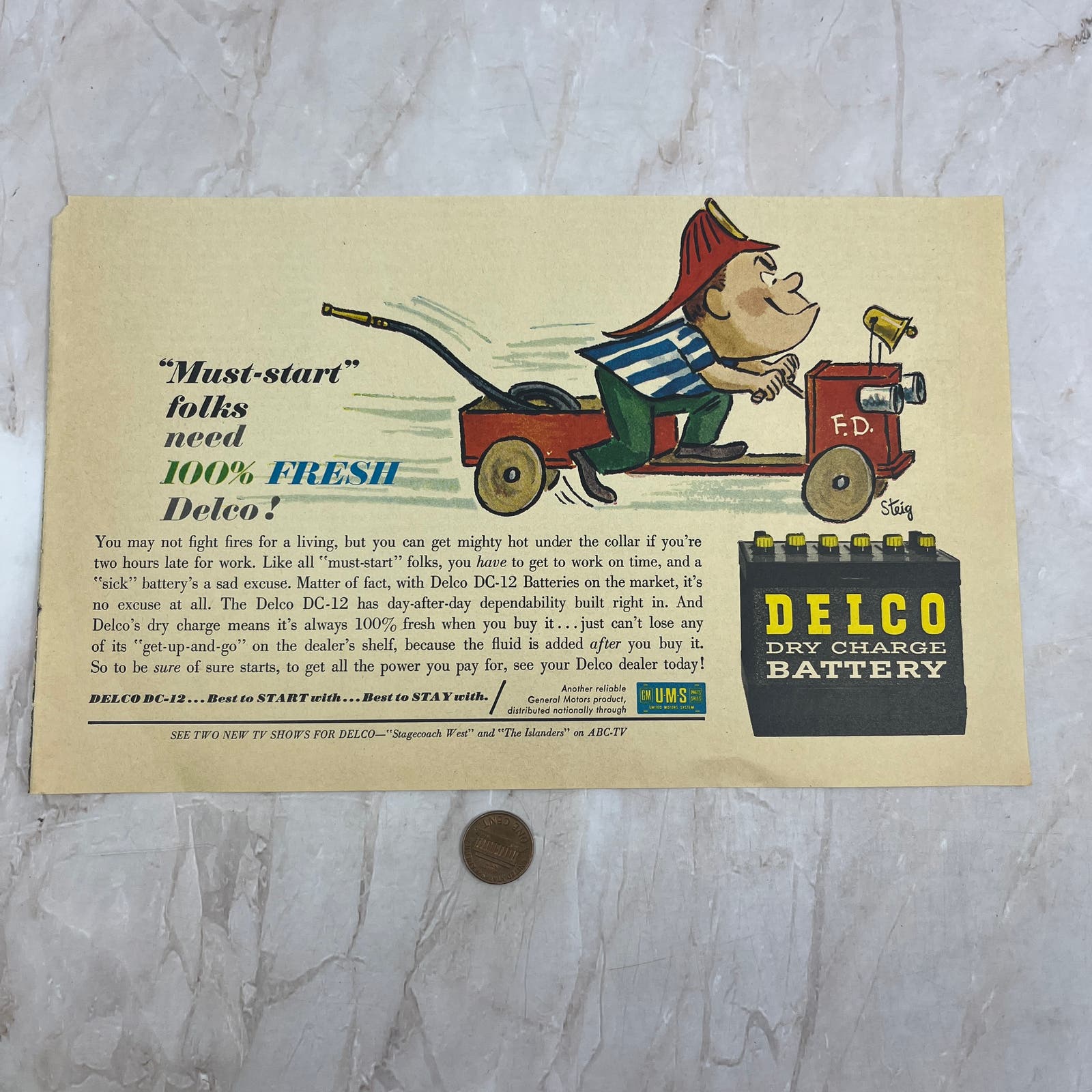 Delco Dry Charge Battery Fireman Comic 6x10 Vintage Magazine Advertisement FL6-6