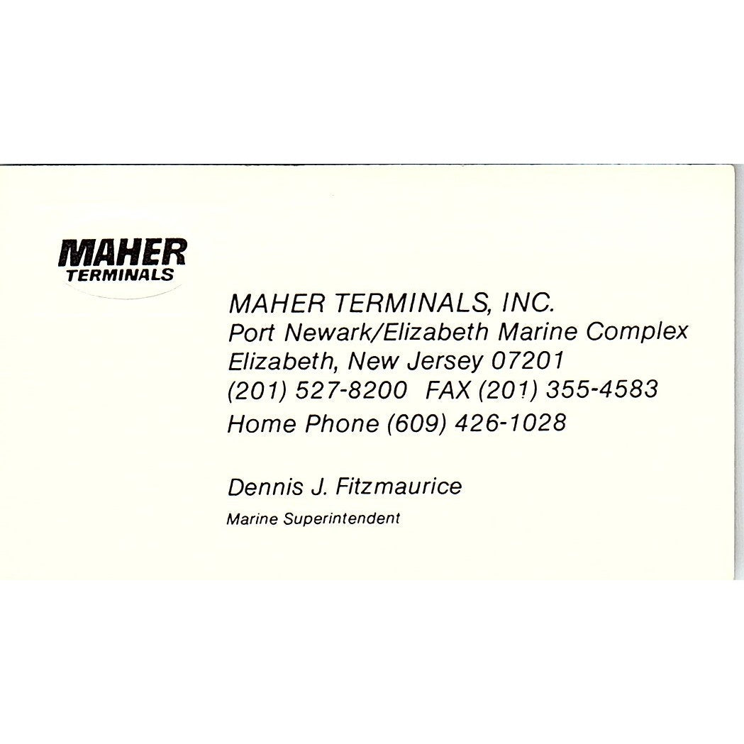 Dennis J Fitzmaurice Maher Terminals Elizabeth NJ Vintage Business Card SC9-B2