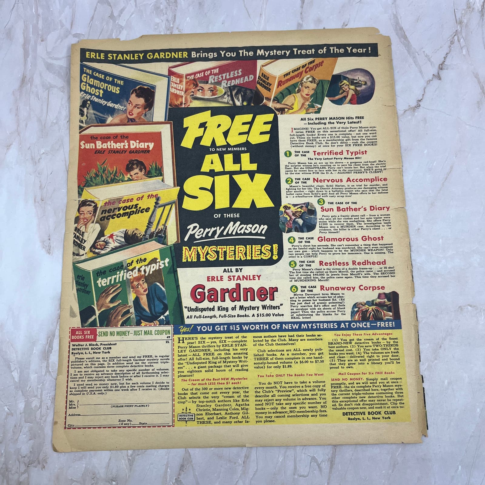 Detective Book Club Perry Mason Mysteries 10x13 Magazine Advertisement FL6-7