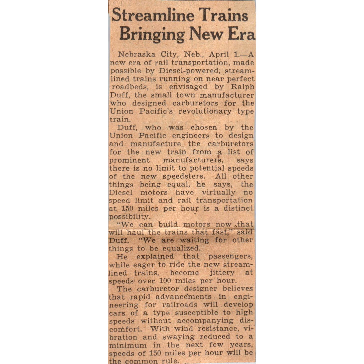 Diesel Powered Streamline Trains 1935 Minneapolis Journal Article AE7-N5