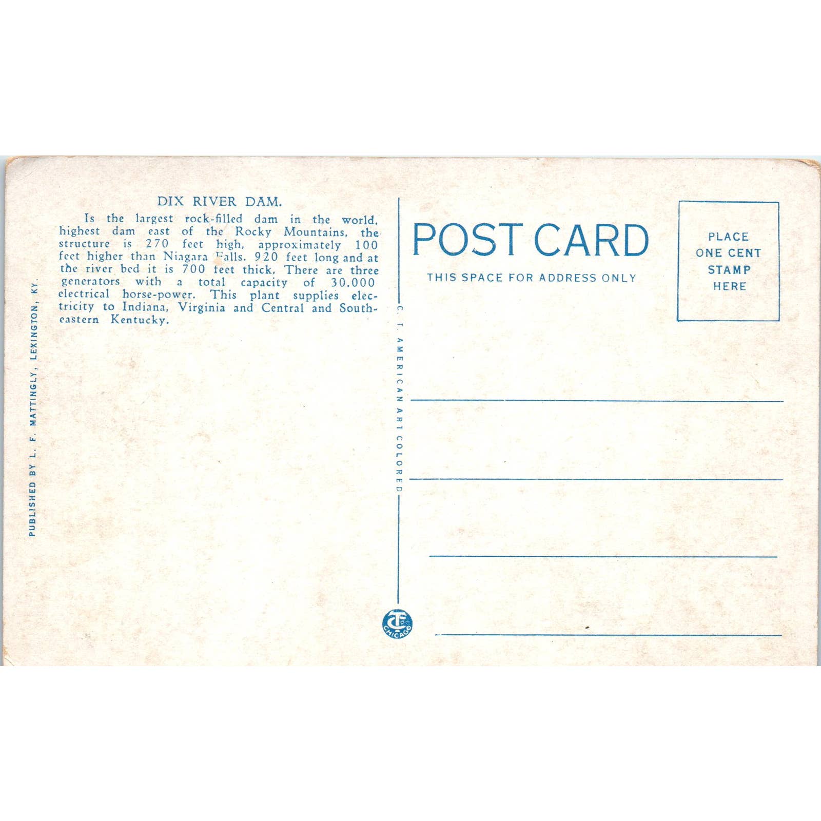 Dix River Hydro Electric Dam High Bridge Kentucky Original Postcard TK1-P1