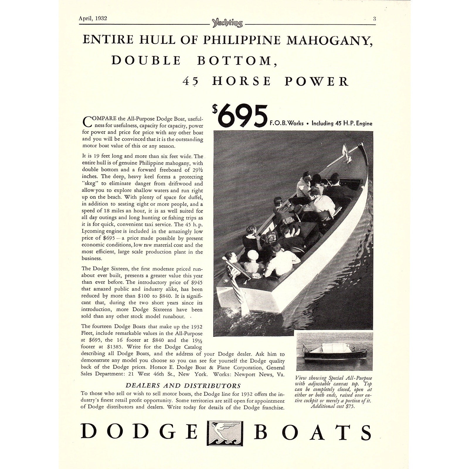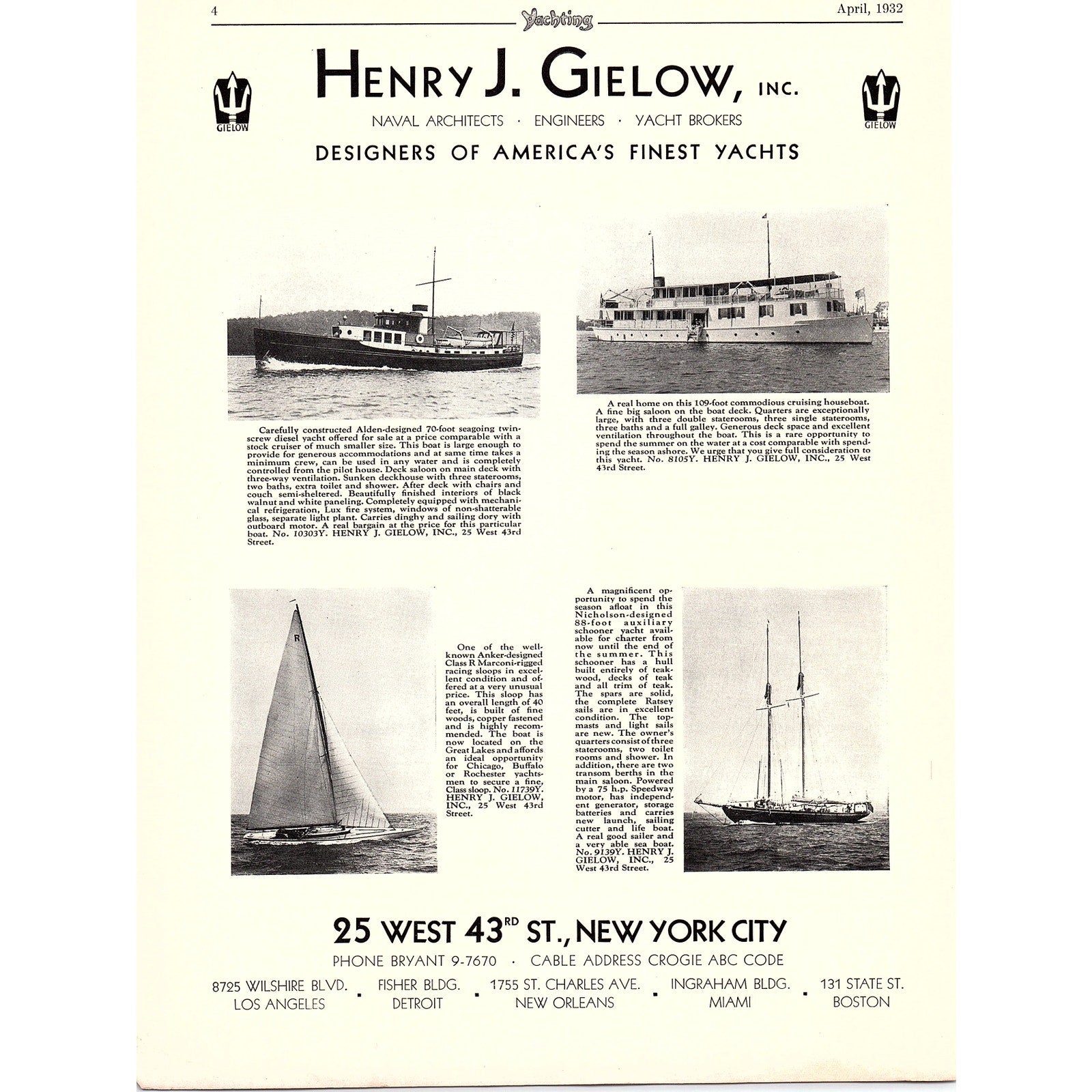 Dodge Boats, Henry J. Gielow Yacht Designer 1932 Ad V1-4