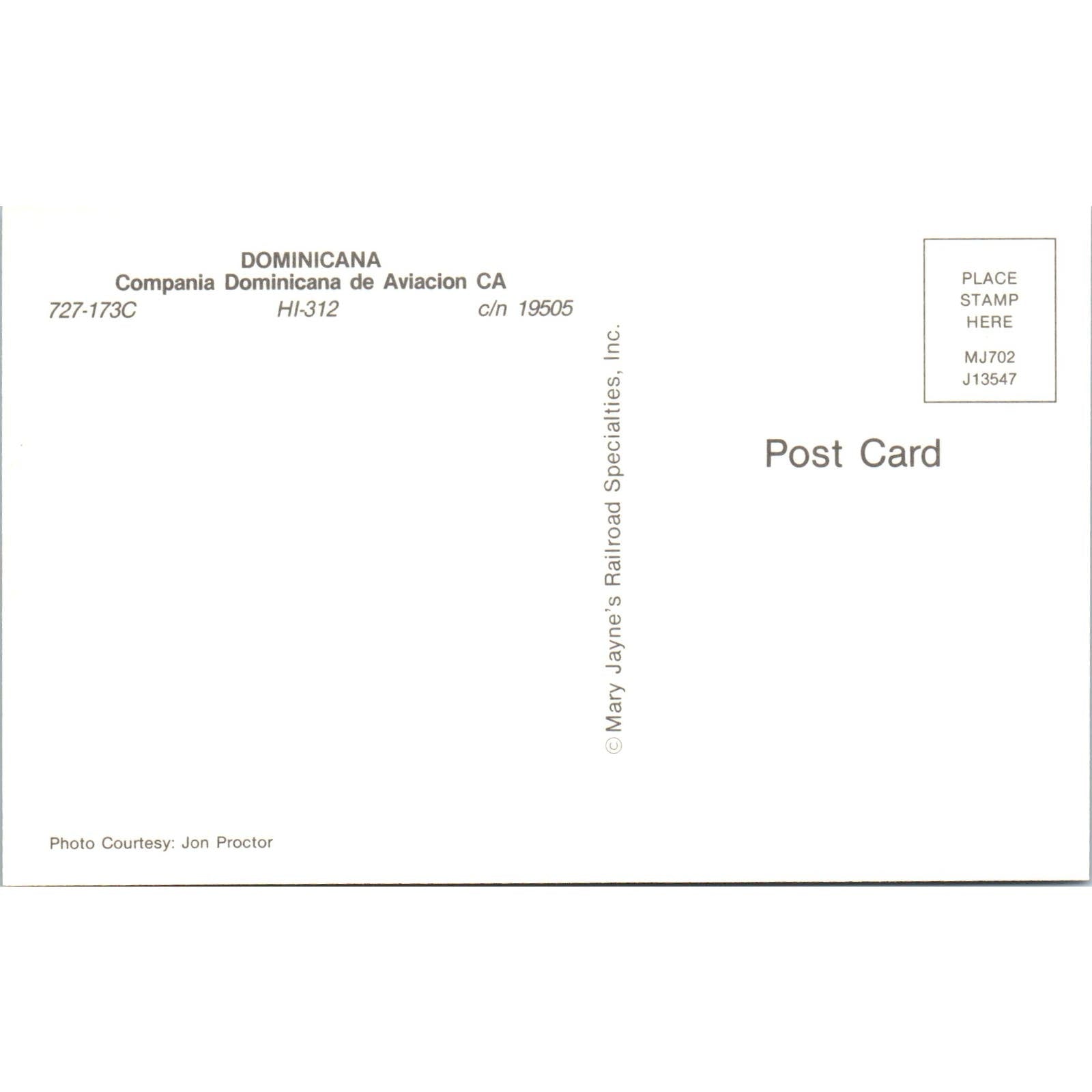 Dominicana Compania Dominicana de Aviacion CA 727-173C Vintage Postcard PC2