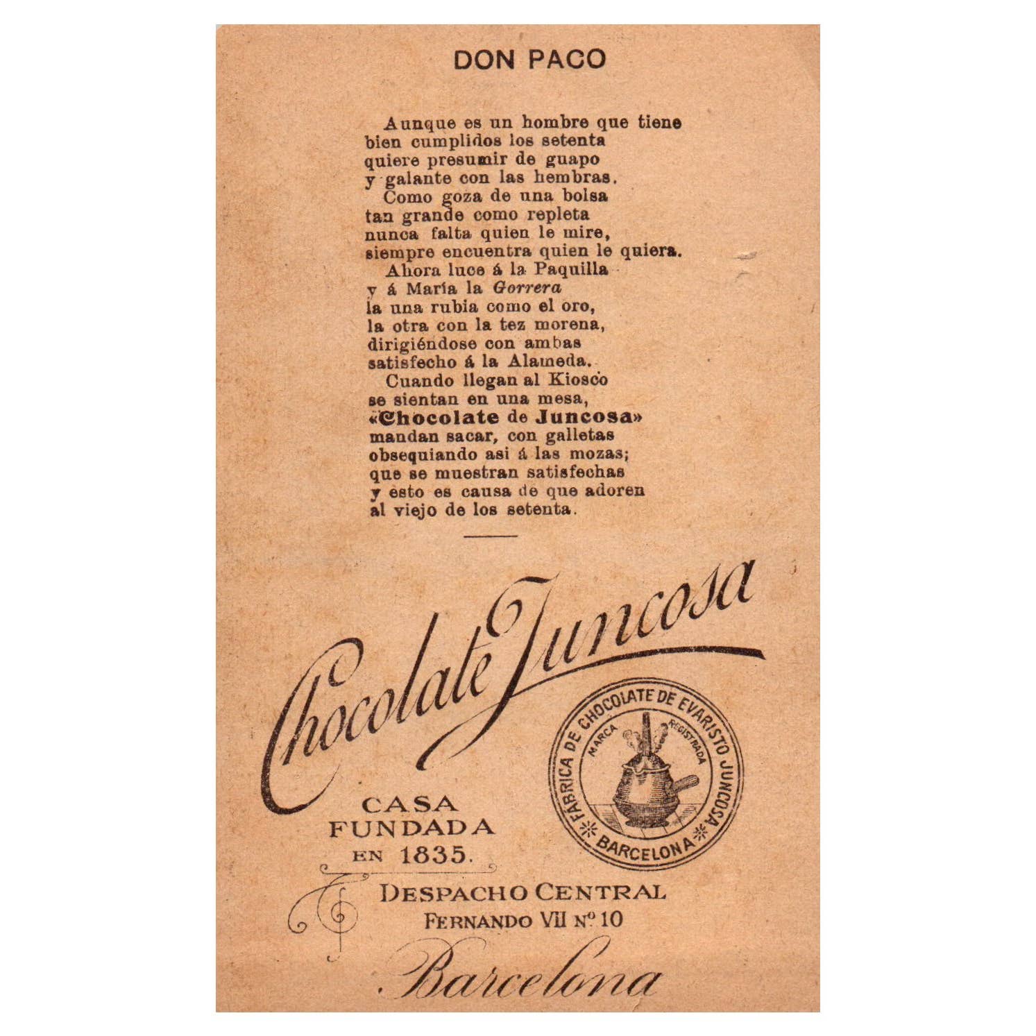 Don Paco Chocolate Juncosa Barcelona - 1880s Victorian Trade Card TJ8-3